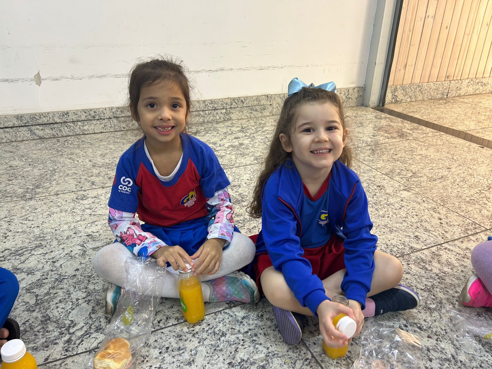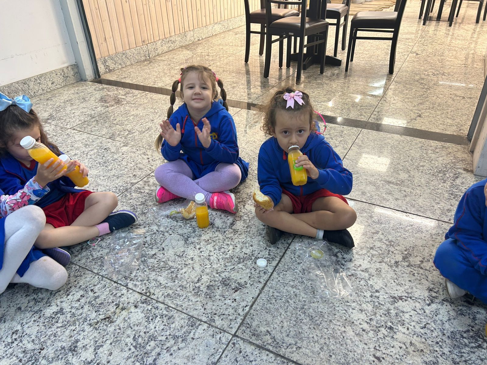 Para encerrar a manhã incrível, foi oferecido um lanchinho delicioso: Pãozinho com presunto e queijo e suco de laranja natural. ????