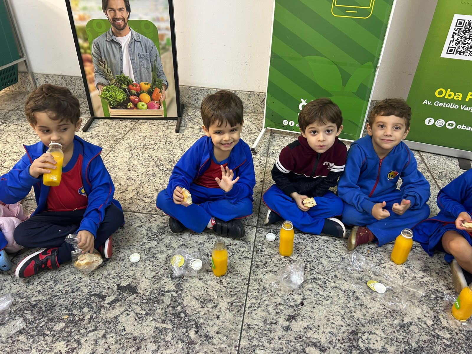 Para fechar o Projeto “A cesta da dona Maricota” com maestria, as turmas do Pré 3 visitaram o hortifruti OBA. ????