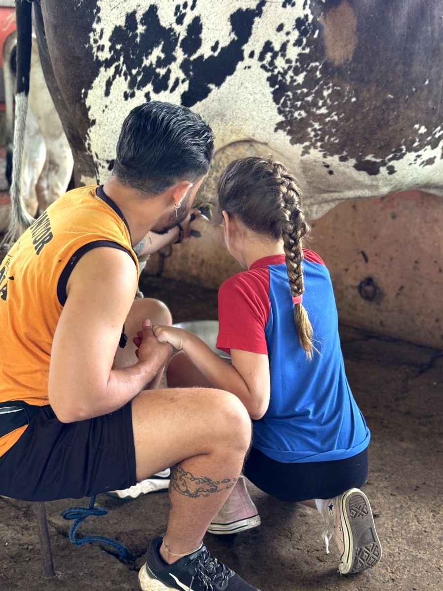 🐄 e até tiramos leite da Morinha, nossa vaquinha tão doce!