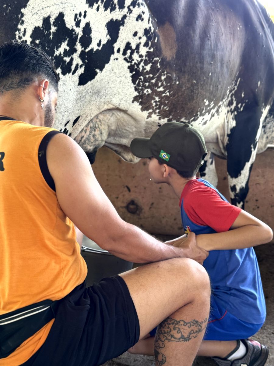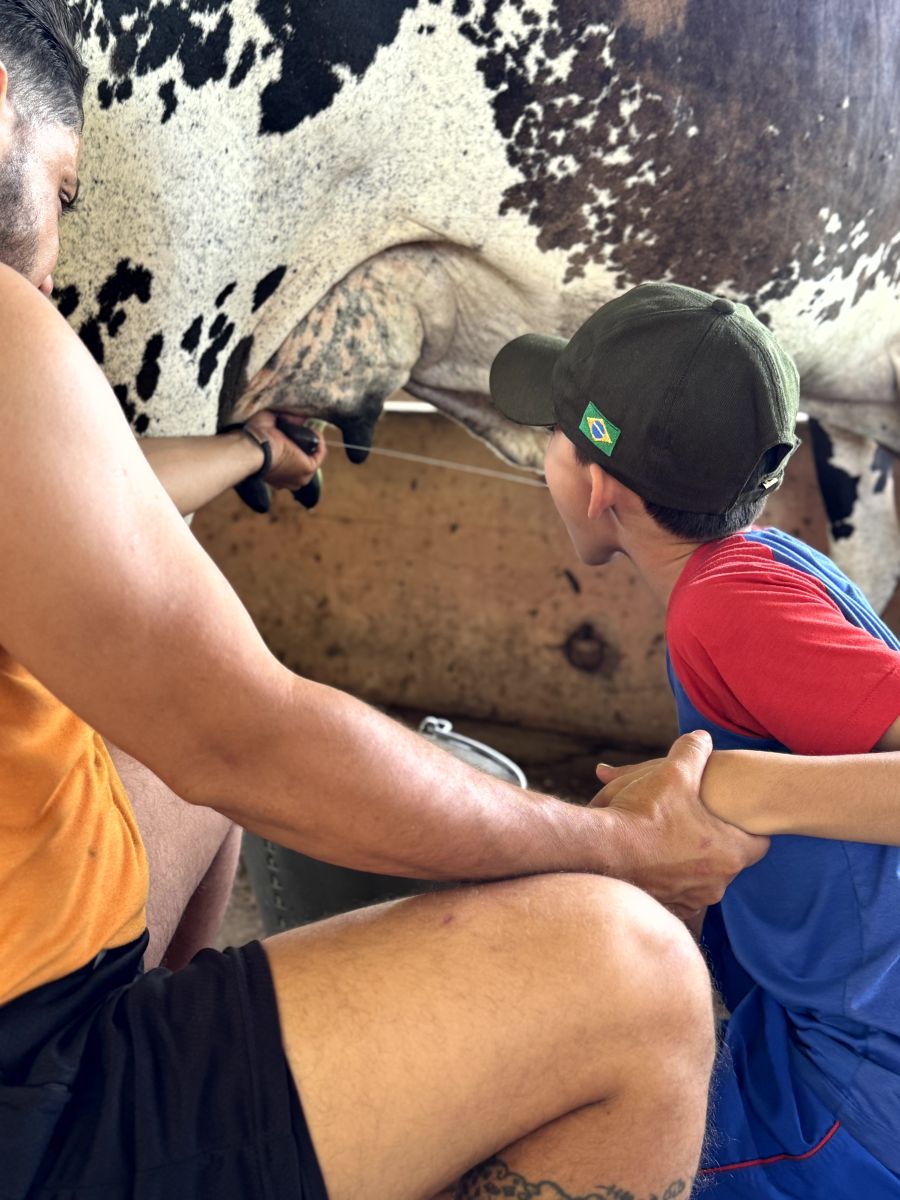 🐄 e até tiramos leite da Morinha, nossa vaquinha tão doce!