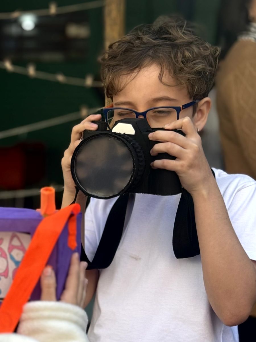 Este ano as crianças do 4º ano trabalharam o livro “Vó, para de fotografar!”, que narra a história de uma menina que se incomoda com a mania da avó de fotografá-la em todos os momentos. A menina pede repetidamente à avó para parar de tirar fotos, mas com o tempo, ela percebe que as fotografias são uma forma de a avó registrar e guardar memórias importantes, mesmo que pequenas e aparentemente banais.
