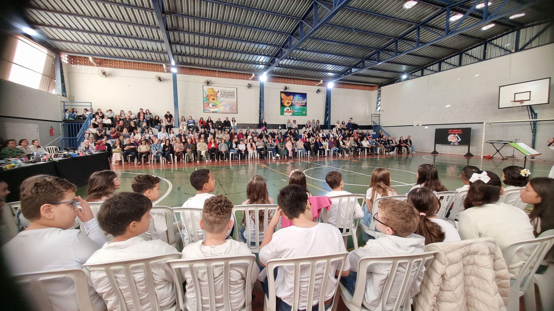 Este ano as crianças do 4º ano trabalharam o livro “Vó, para de fotografar!”, que narra a história de uma menina que se incomoda com a mania da avó de fotografá-la em todos os momentos. A menina pede repetidamente à avó para parar de tirar fotos, mas com o tempo, ela percebe que as fotografias são uma forma de a avó registrar e guardar memórias importantes, mesmo que pequenas e aparentemente banais.