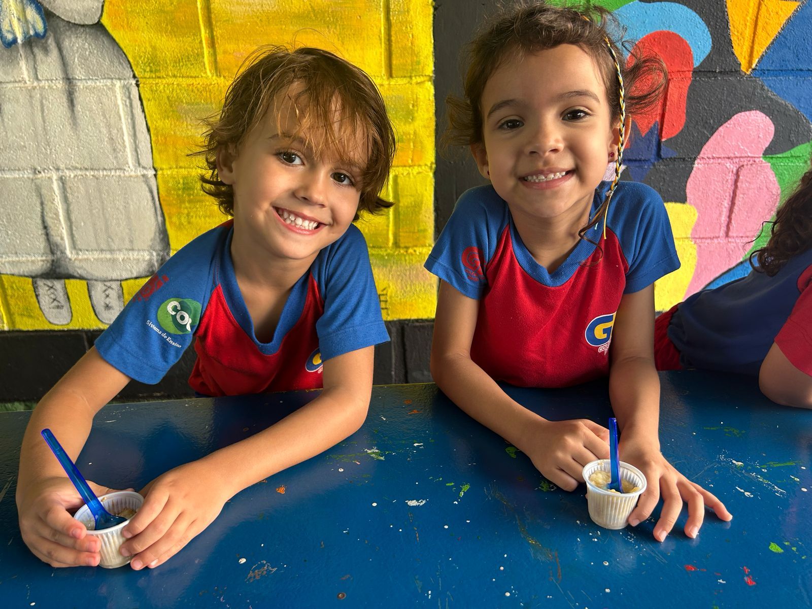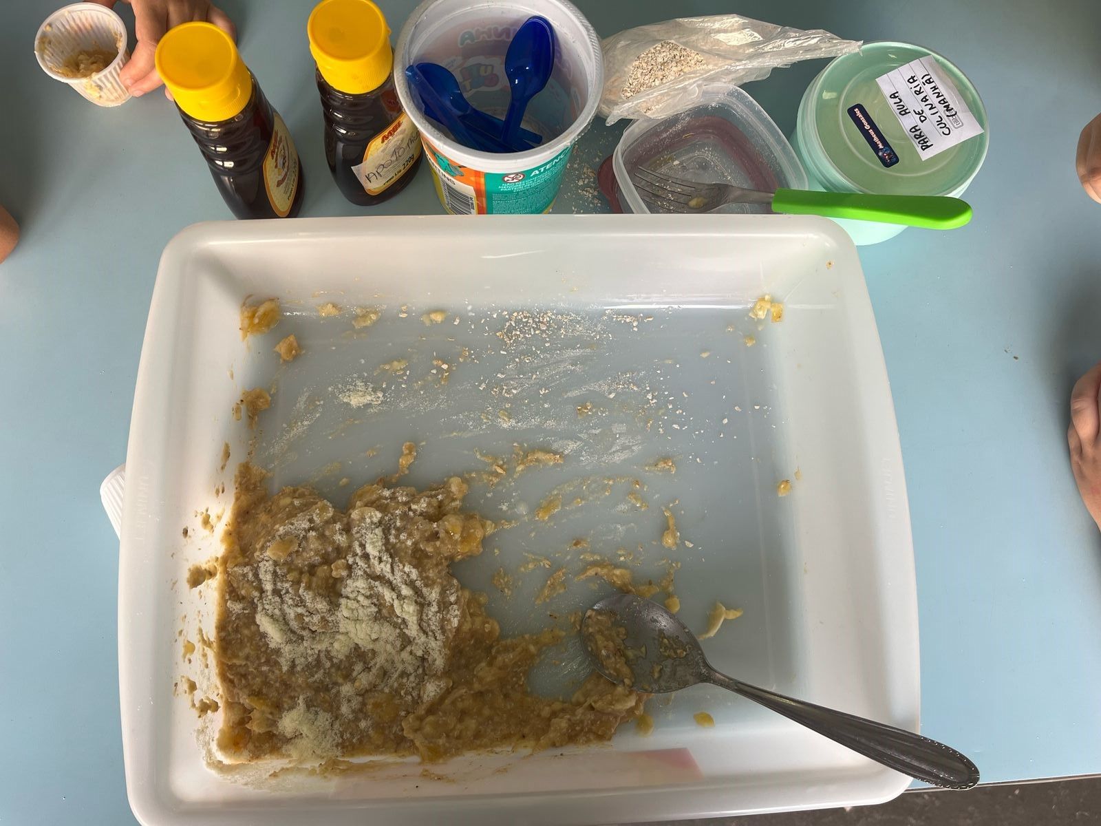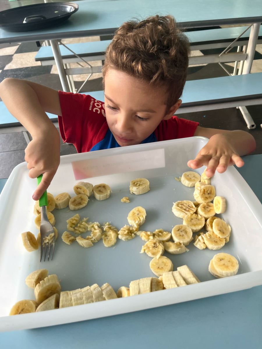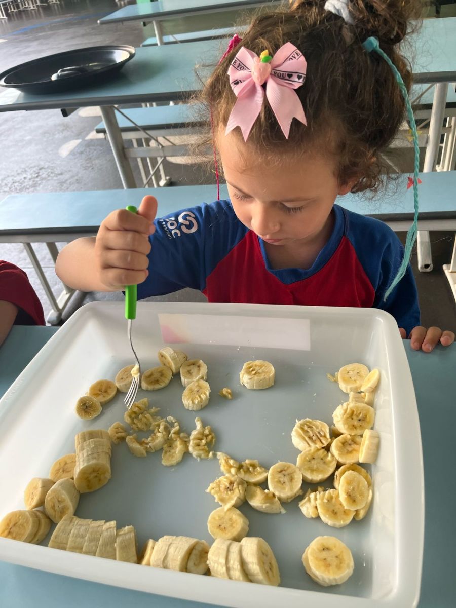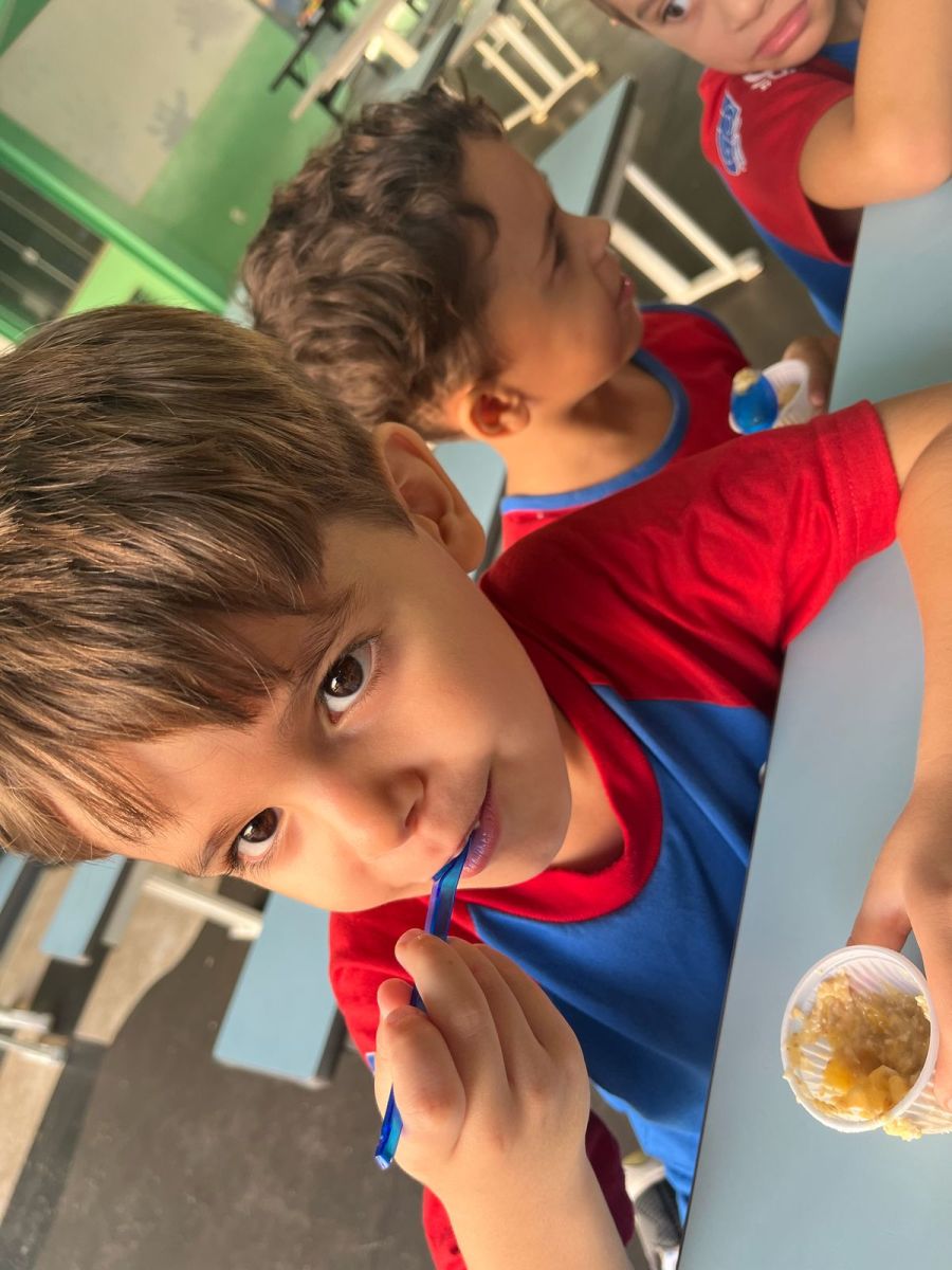 Durante a semana aprenderam sobre a escrita dos nomes das frutas, fizeram atividades de recorte e colagem e para a aula ficar ainda mais saborosa nada melhor que uma deliciosa culinária proposta pelo livro COC: Banana com Aveia e Mel.