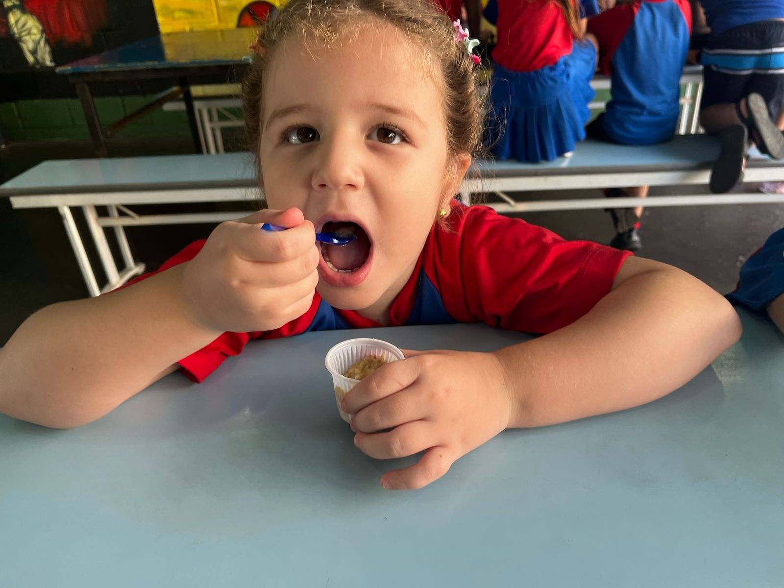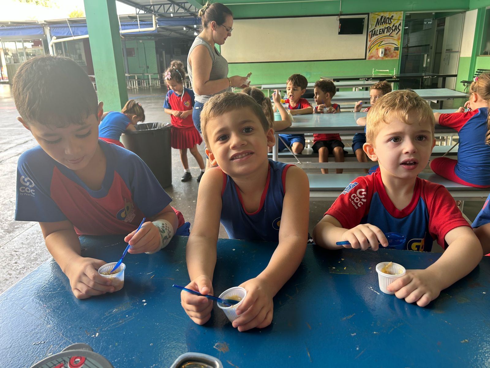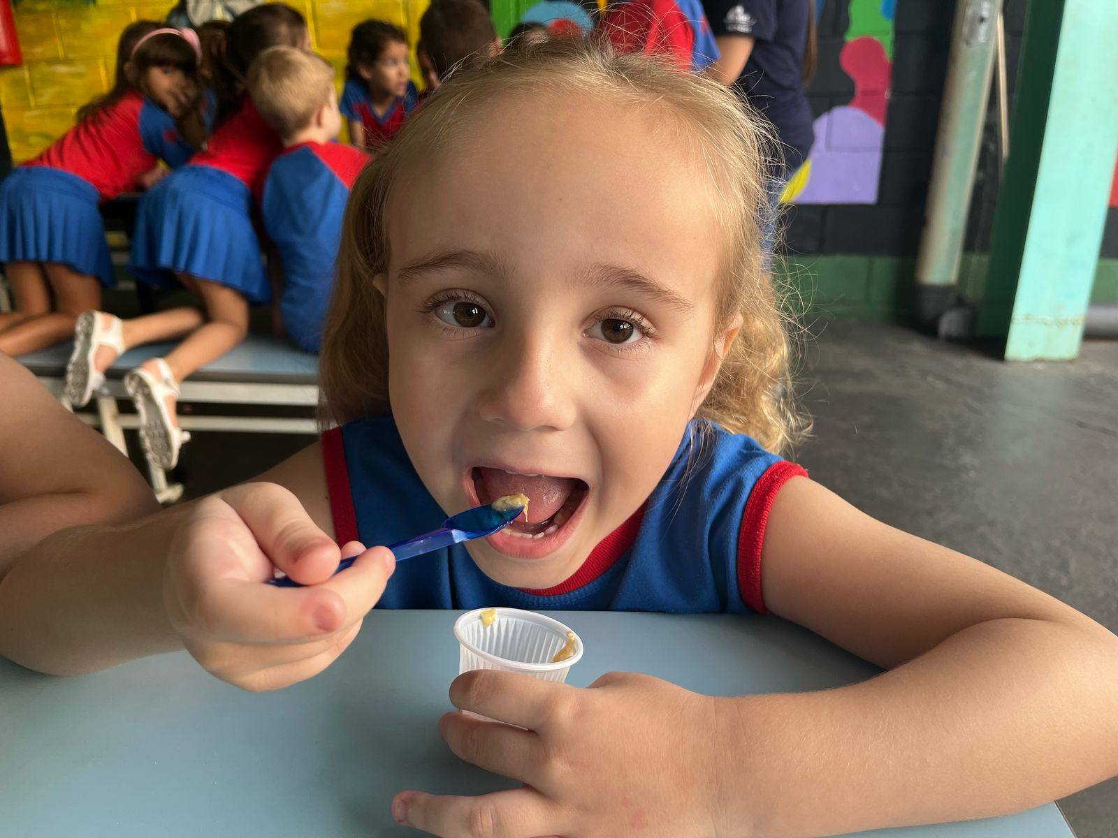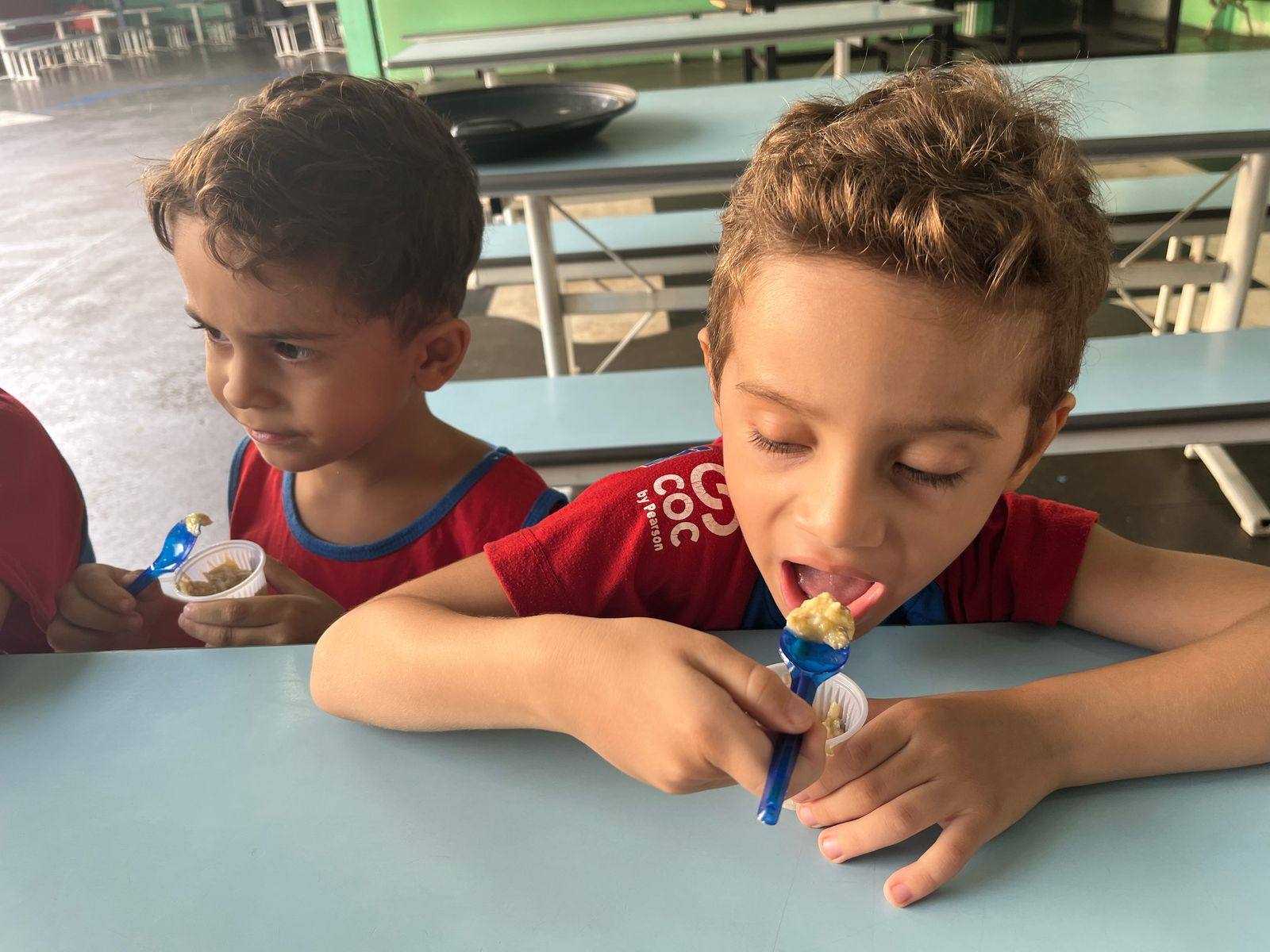 Foi solicitado, antecipadamente aos pais, para providenciarem um dos ingredientes e com isso realizamos a preparação da receita. As crianças desenvolveram autonomia na preparação, mexendo a mistura, incluindo os ingredientes e depois se deliciaram com a receita!