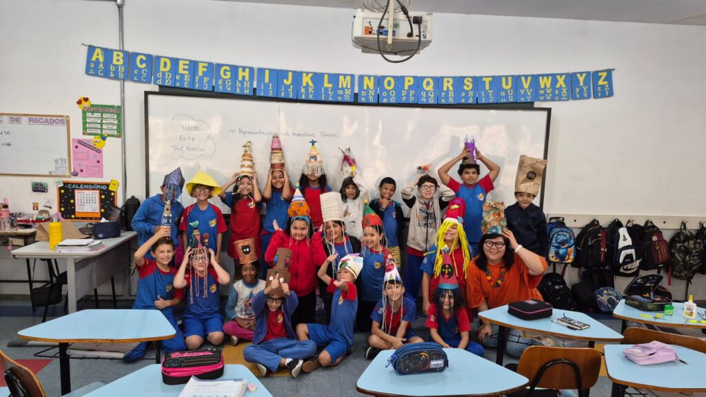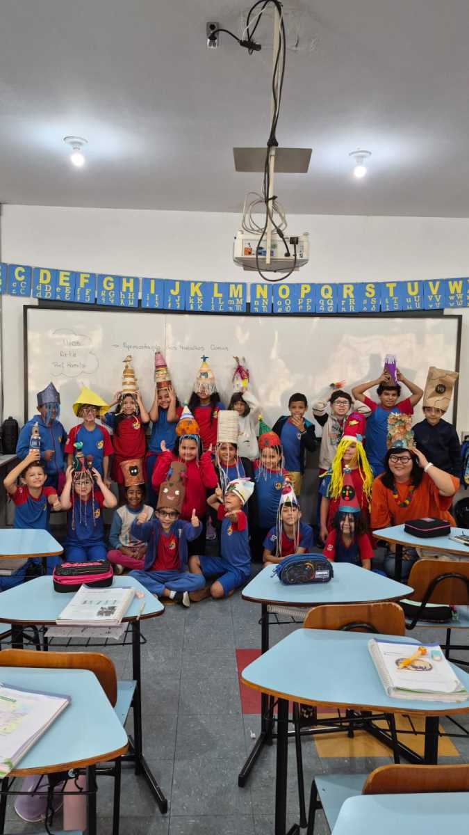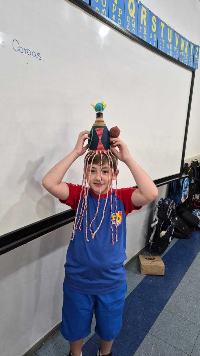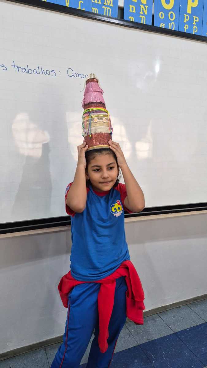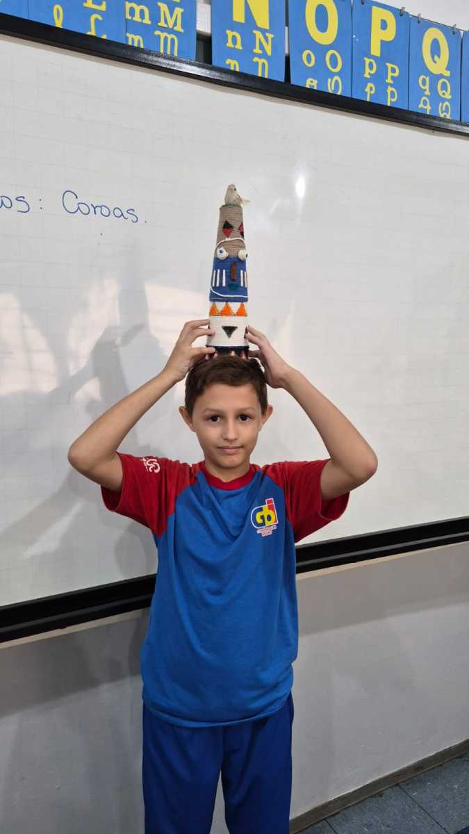Os alunos do 4º ano B mergulharam na riqueza da cultura afro-brasileira ao confeccionarem coroas inspiradas na tradição Iorubá, utilizando a criatividade para transformar materiais reciclados em verdadeiras obras de arte.