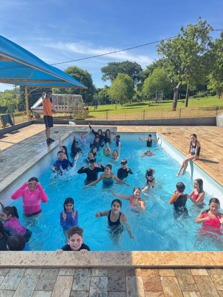 Utilizando urucum, fruto do urucuzeiro ou urucueiro (árvore da família das bixáceas, nativa na América tropical), as crianças contaram histórias criadas por elas mesmas, se imaginando na era paleolítica, através de pinturas rupestres com a tinta extraída das sementes do fruto urucum.