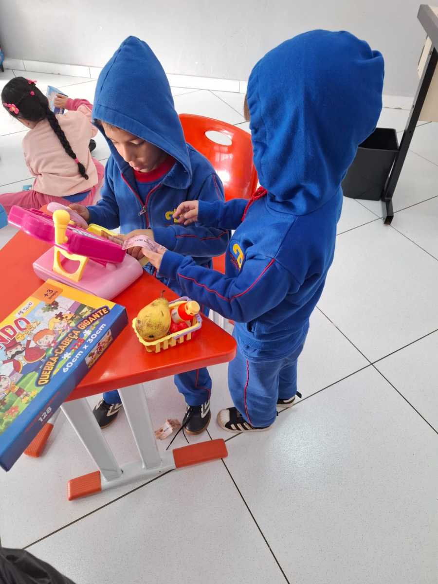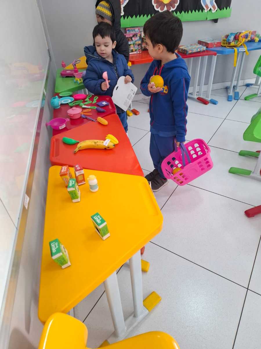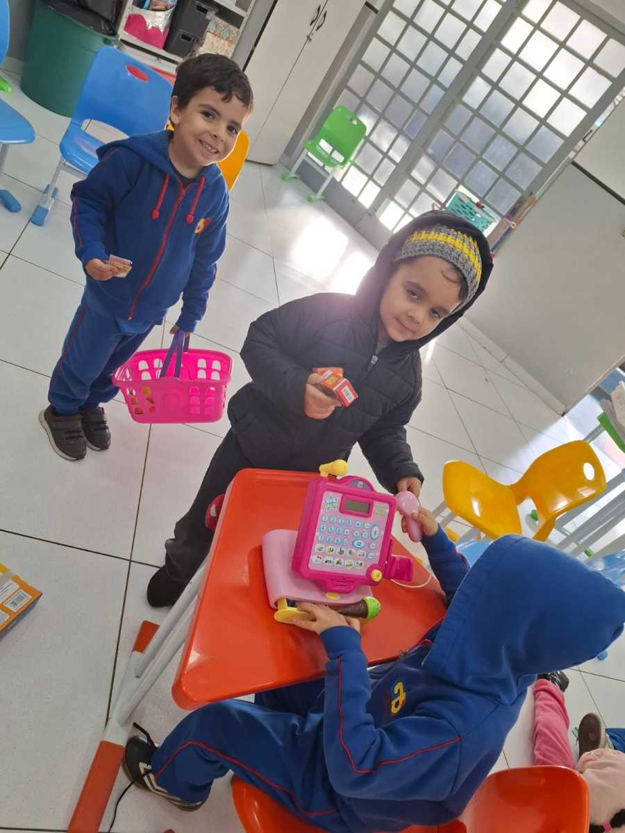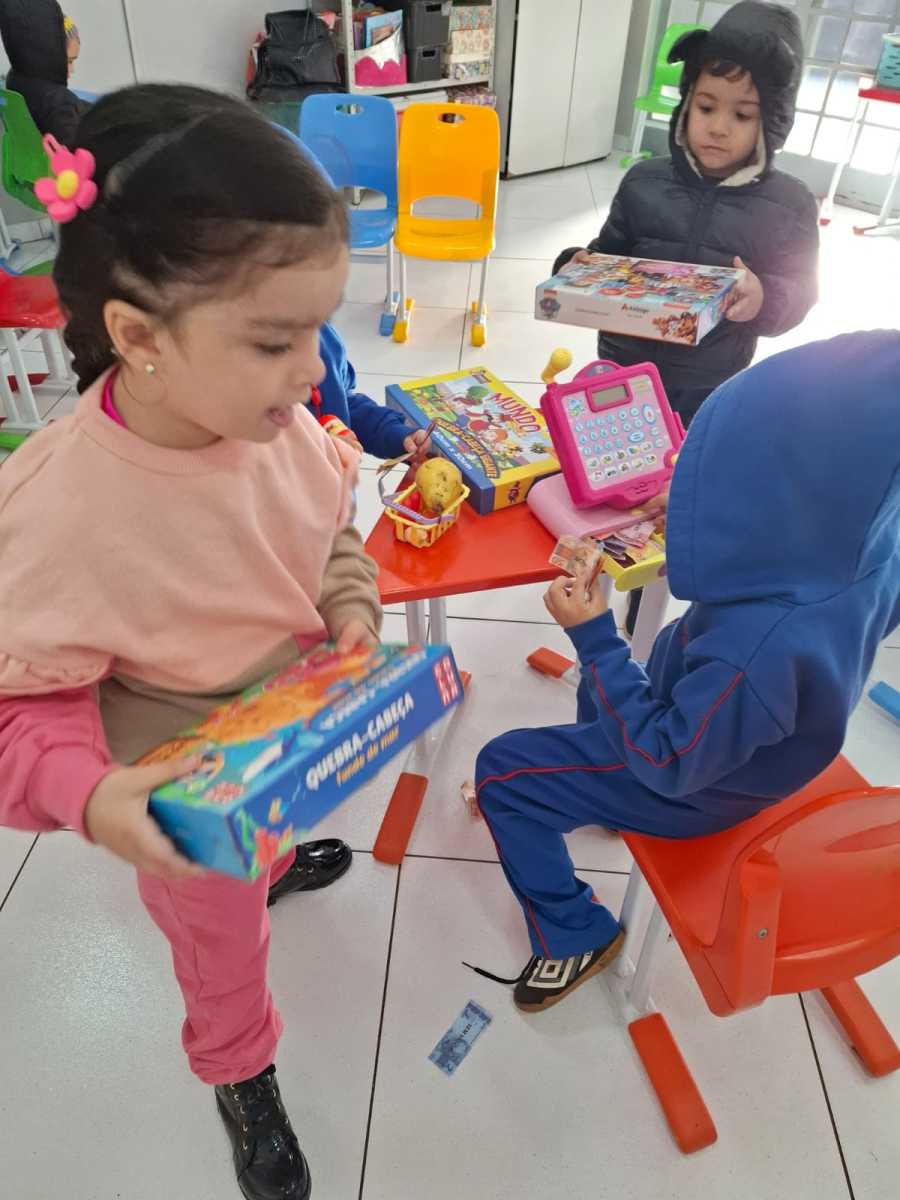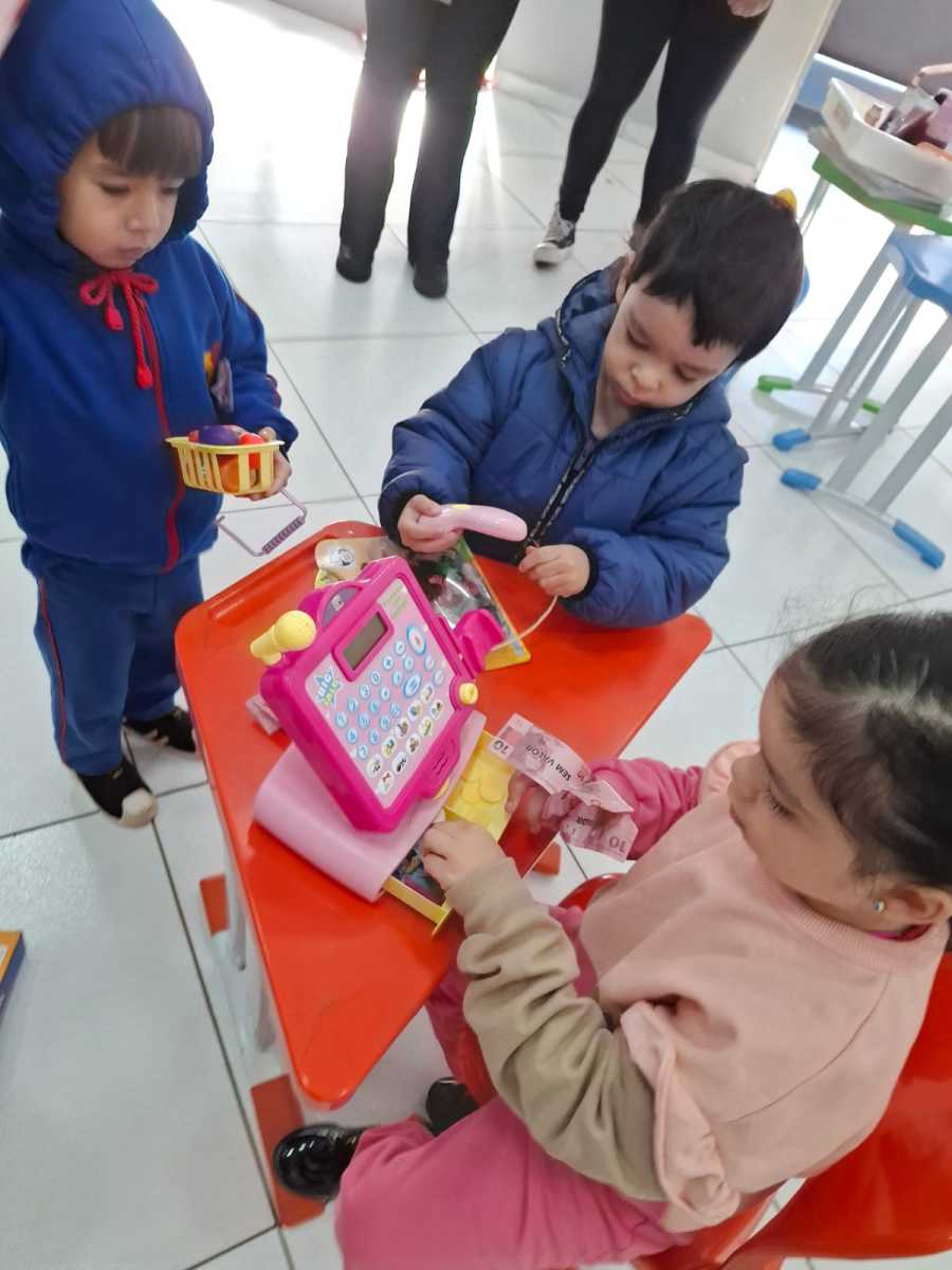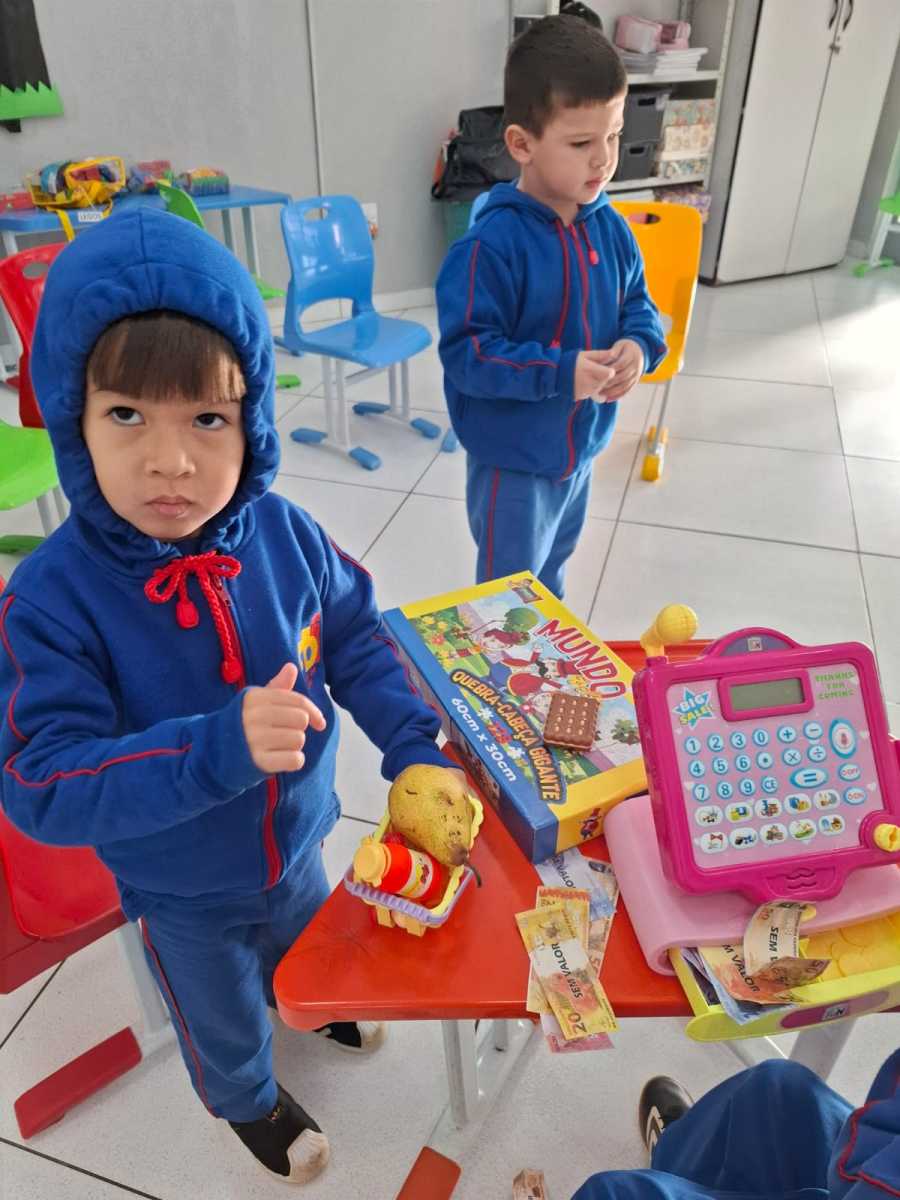 Com dinheiro fictício, produtos etiquetados, e muita imaginação, as crianças assumiram diferentes papéis: clientes, vendedores, e caixas. Através da brincadeira, vivenciaram situações do dia a dia, como comprar, escolher o que levar com o dinheiro disponível.