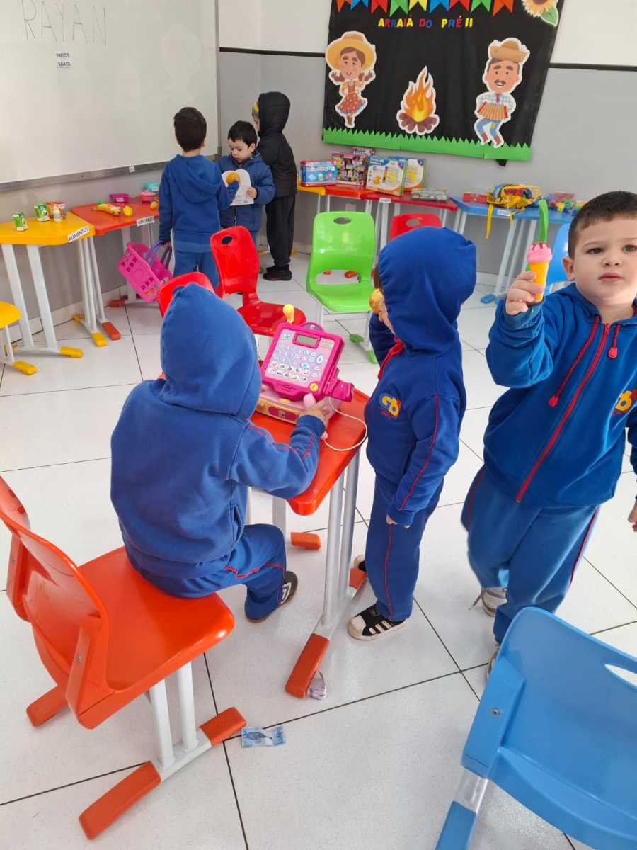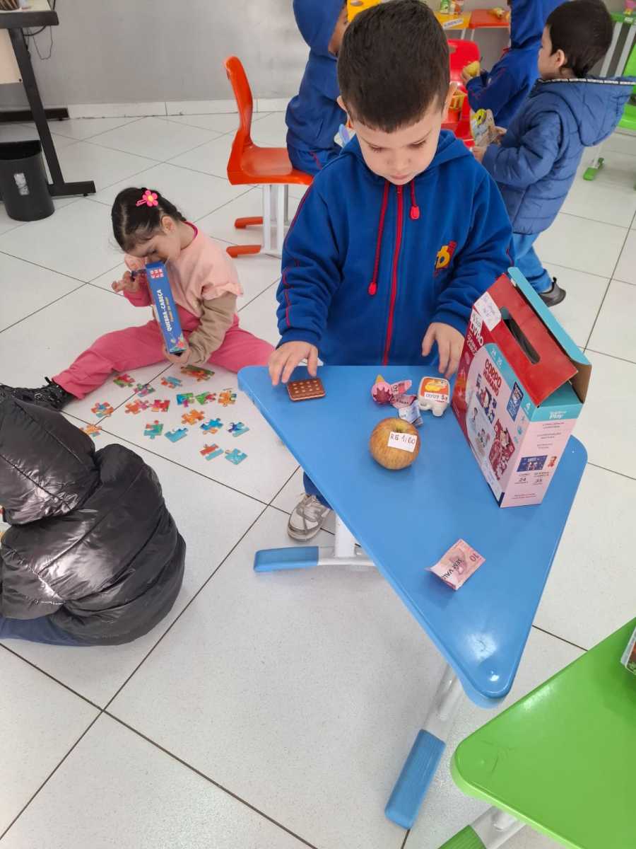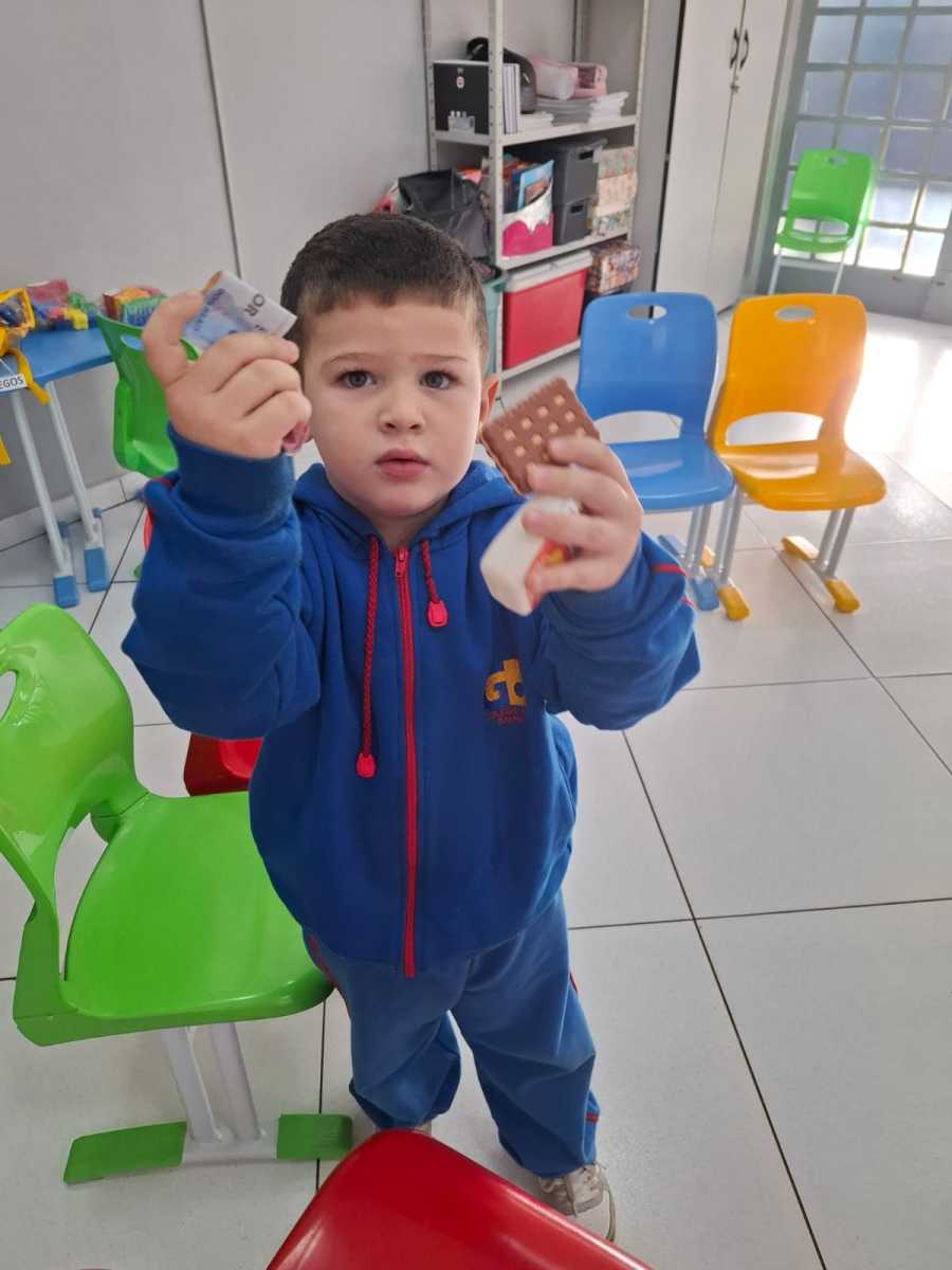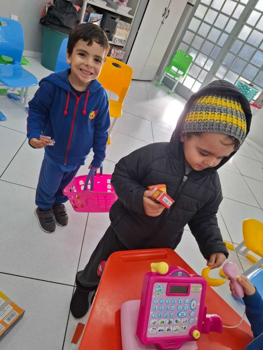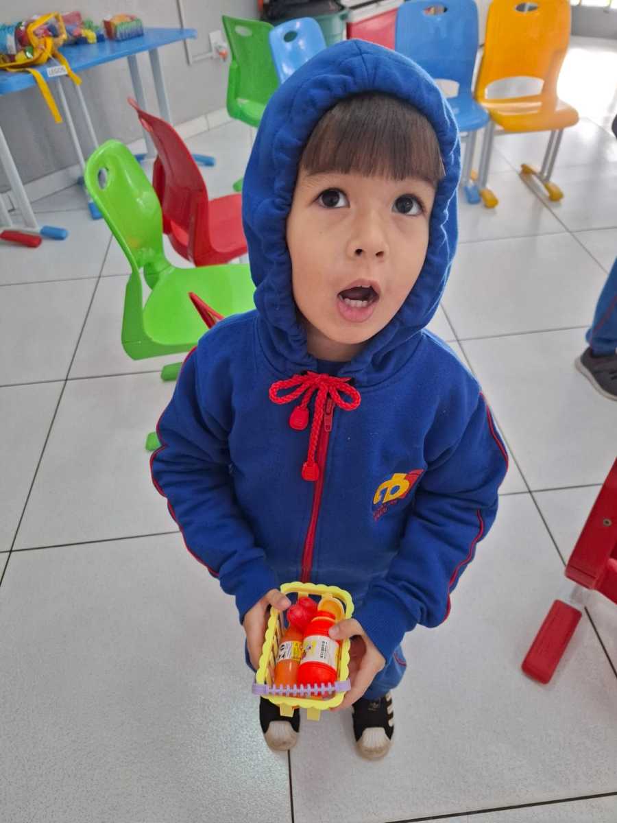 Com dinheiro fictício, produtos etiquetados, e muita imaginação, as crianças assumiram diferentes papéis: clientes, vendedores, e caixas. Através da brincadeira, vivenciaram situações do dia a dia, como comprar, escolher o que levar com o dinheiro disponível.
