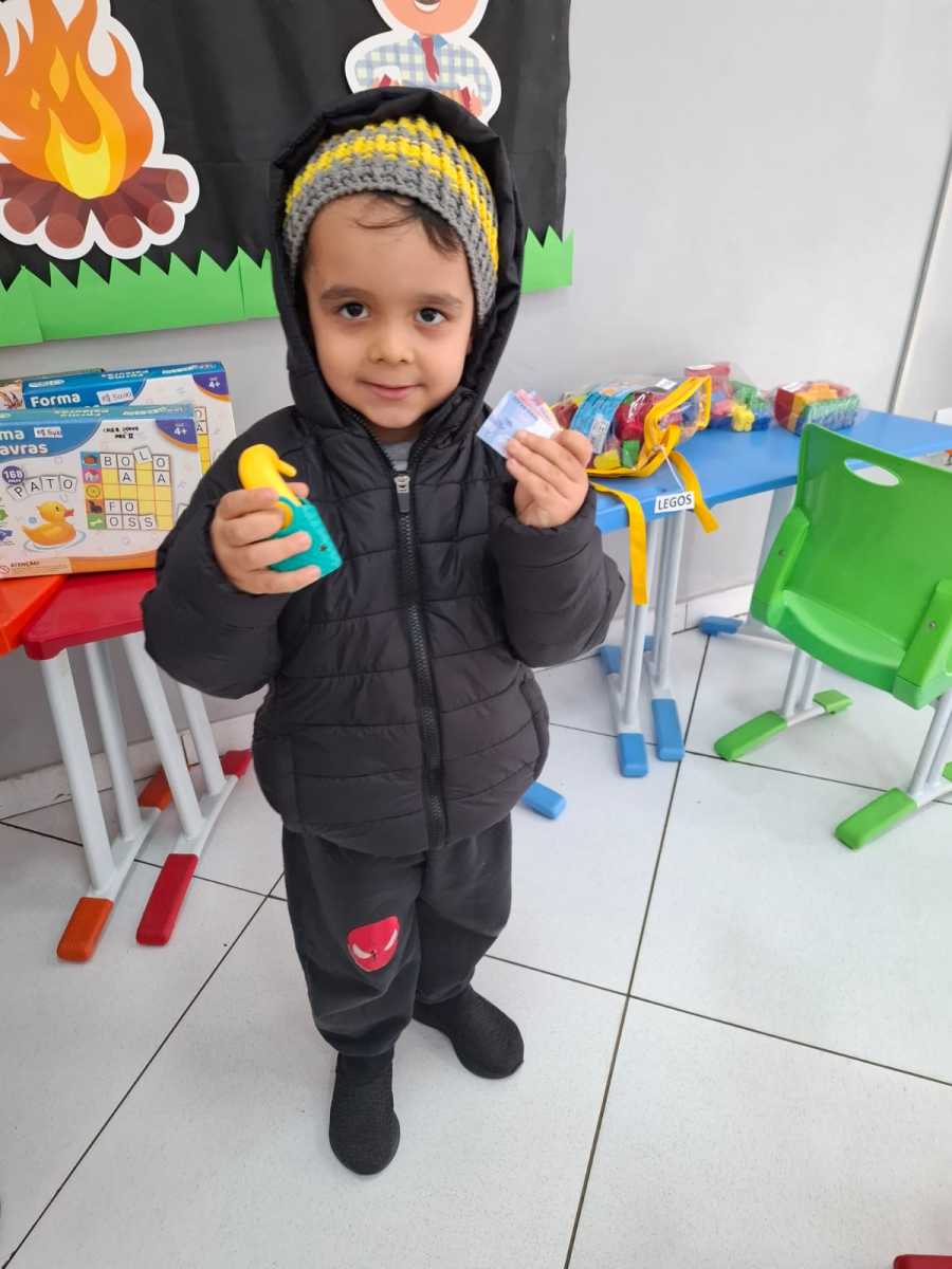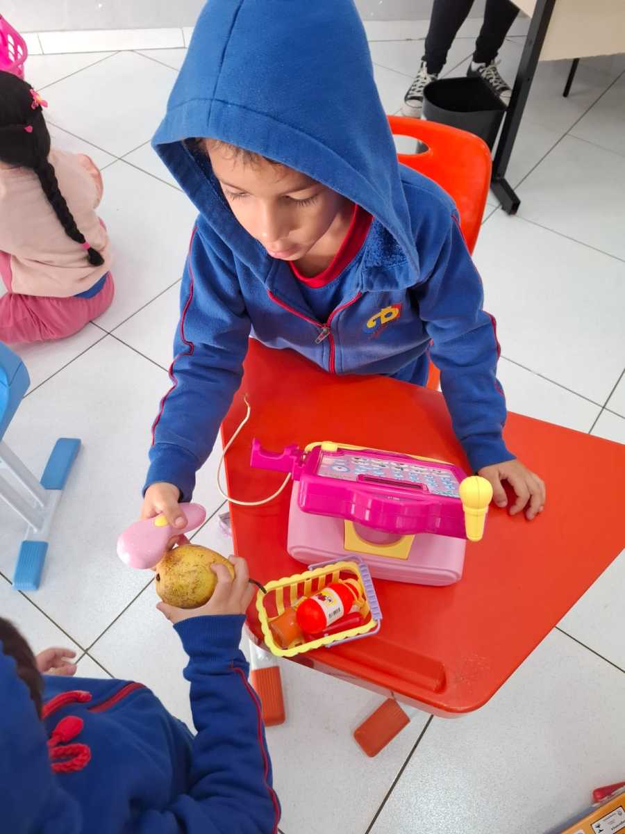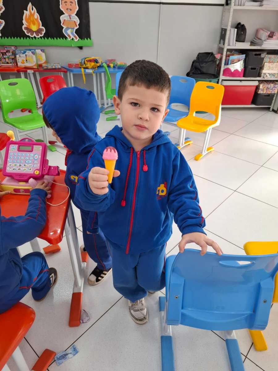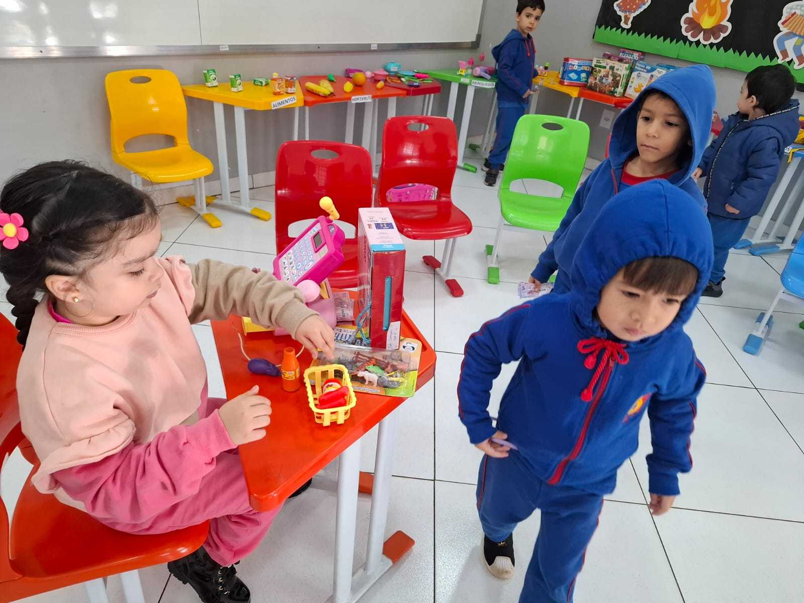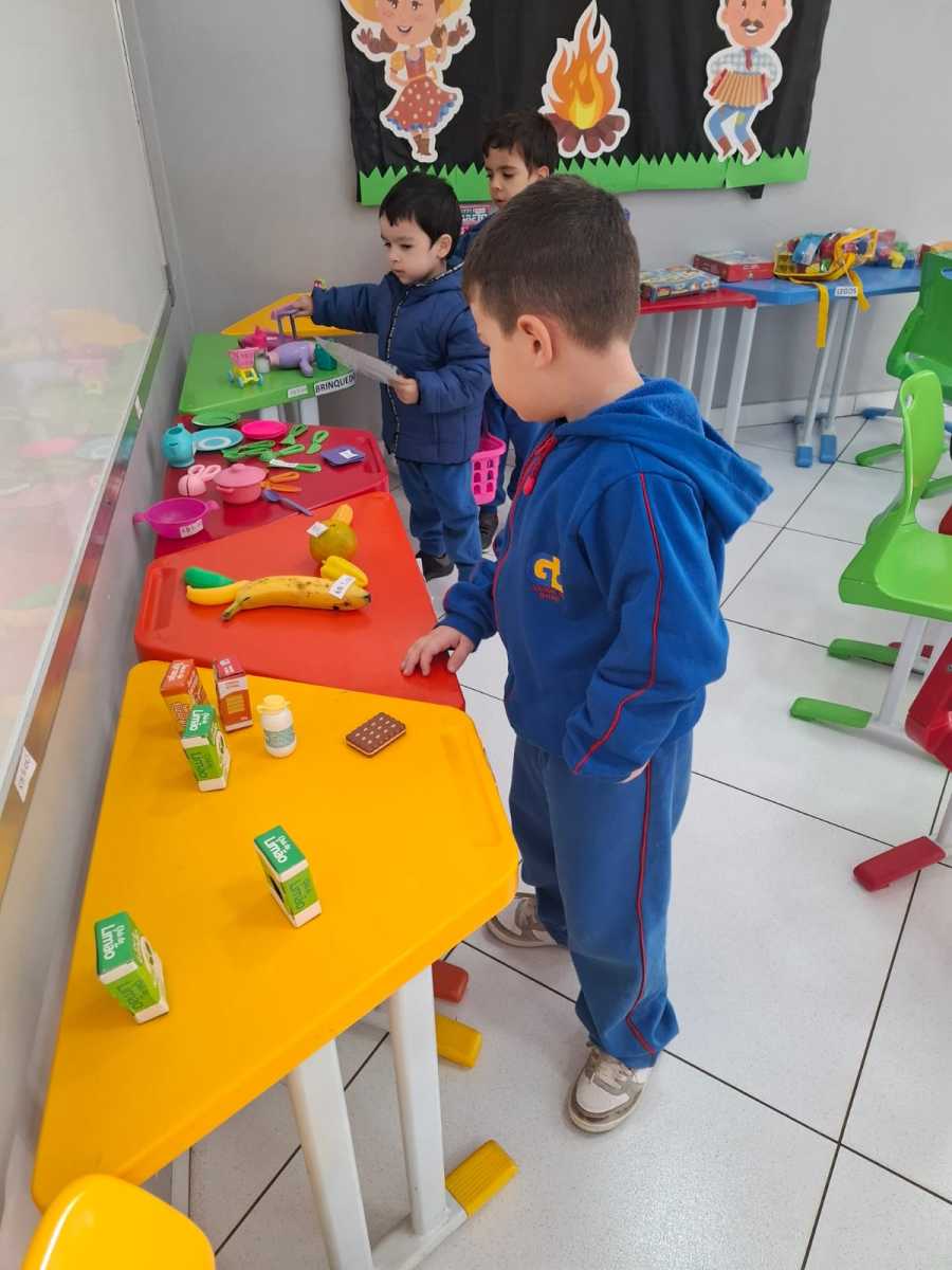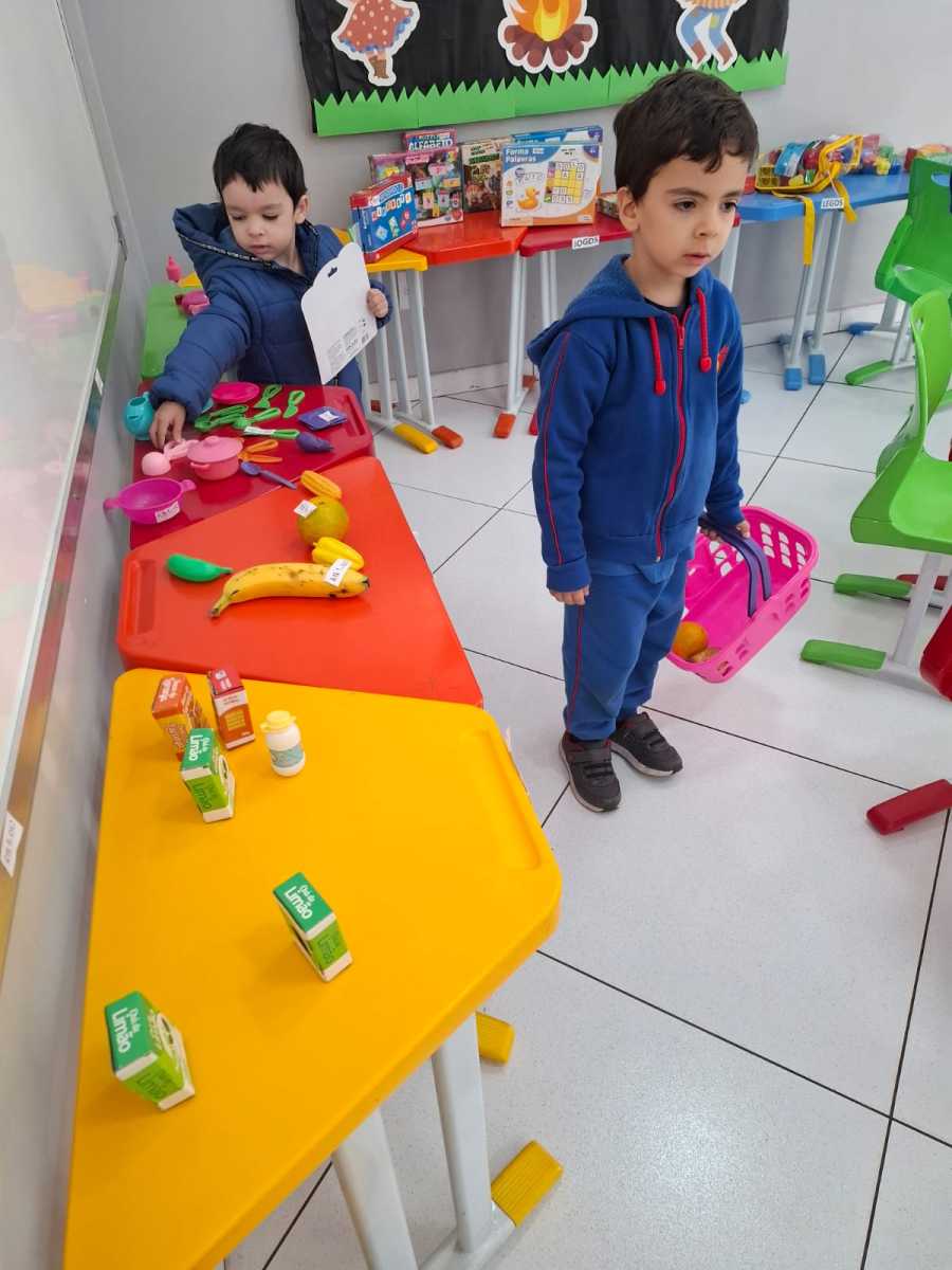 Com dinheiro fictício, produtos etiquetados, e muita imaginação, as crianças assumiram diferentes papéis: clientes, vendedores, e caixas. Através da brincadeira, vivenciaram situações do dia a dia, como comprar, escolher o que levar com o dinheiro disponível.