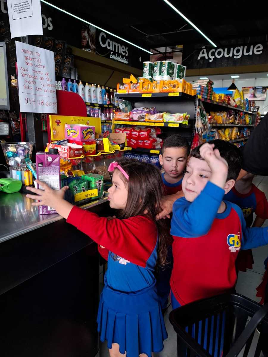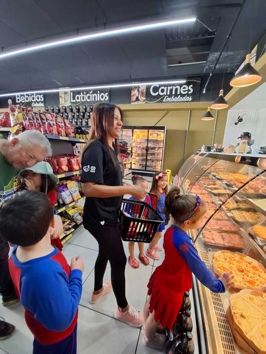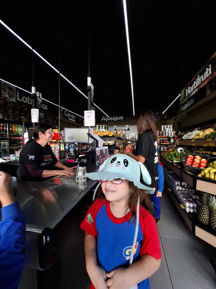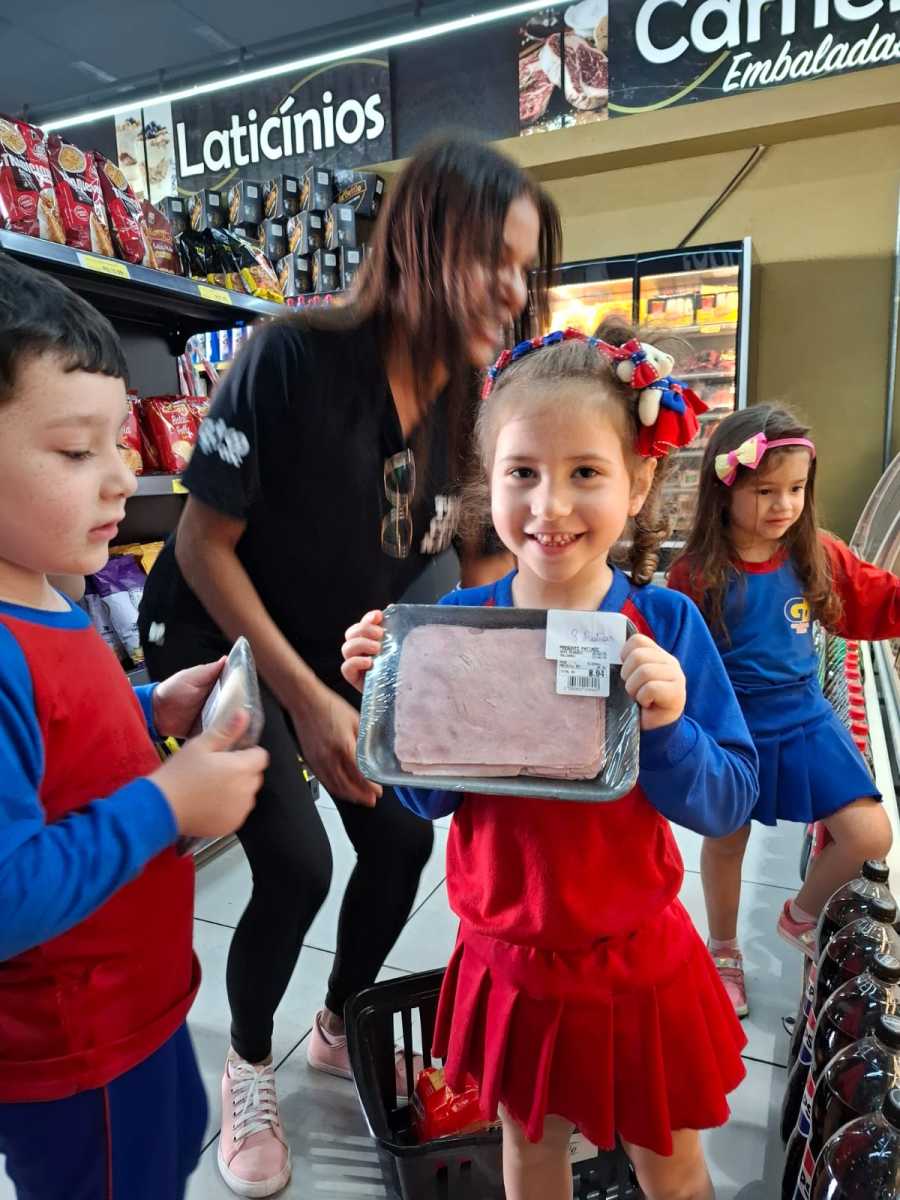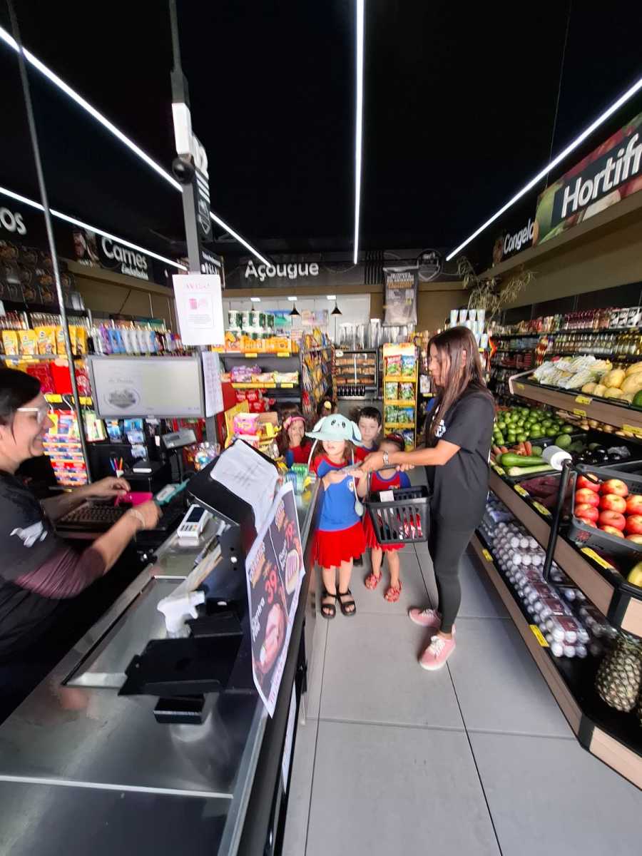 Para tornar essa experiência ainda mais rica, realizamos um passeio ao supermercado, onde as crianças puderam observar os alimentos frescos e escolher ingredientes para a próxima etapa: a preparação de um delicioso sanduíche natural!
