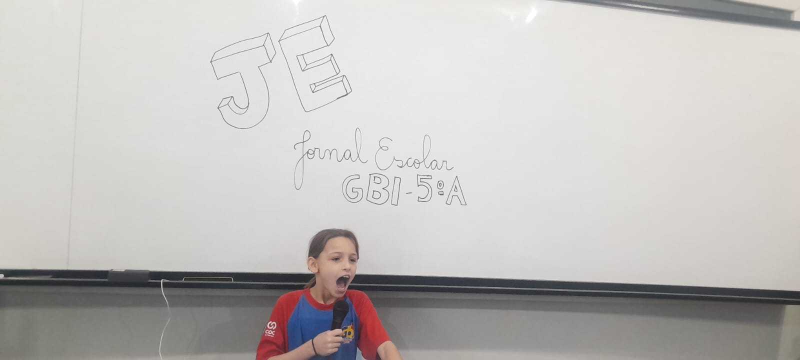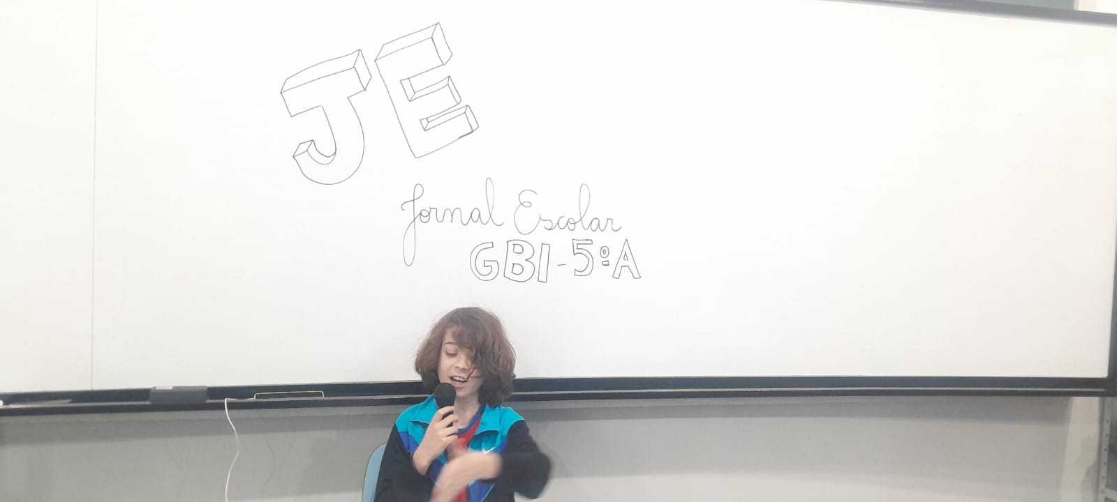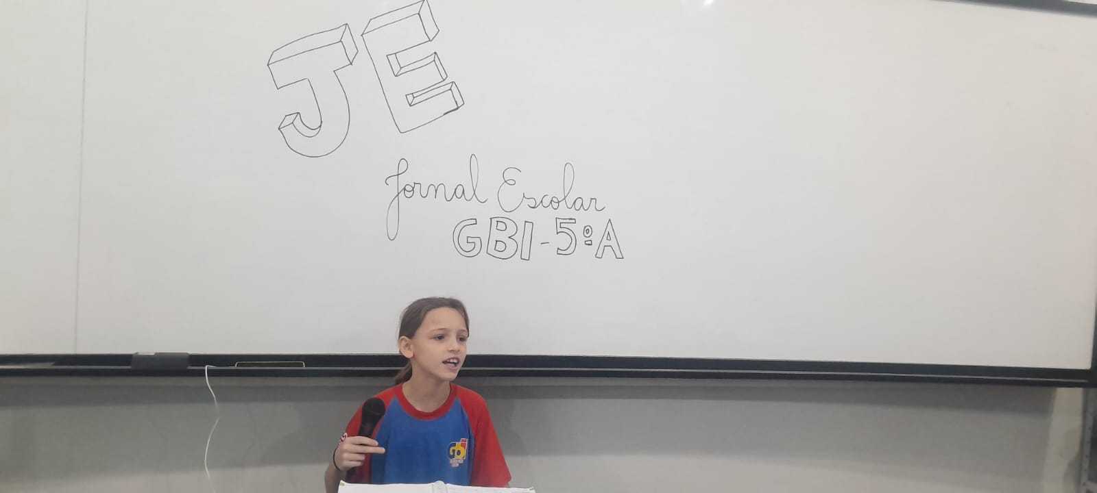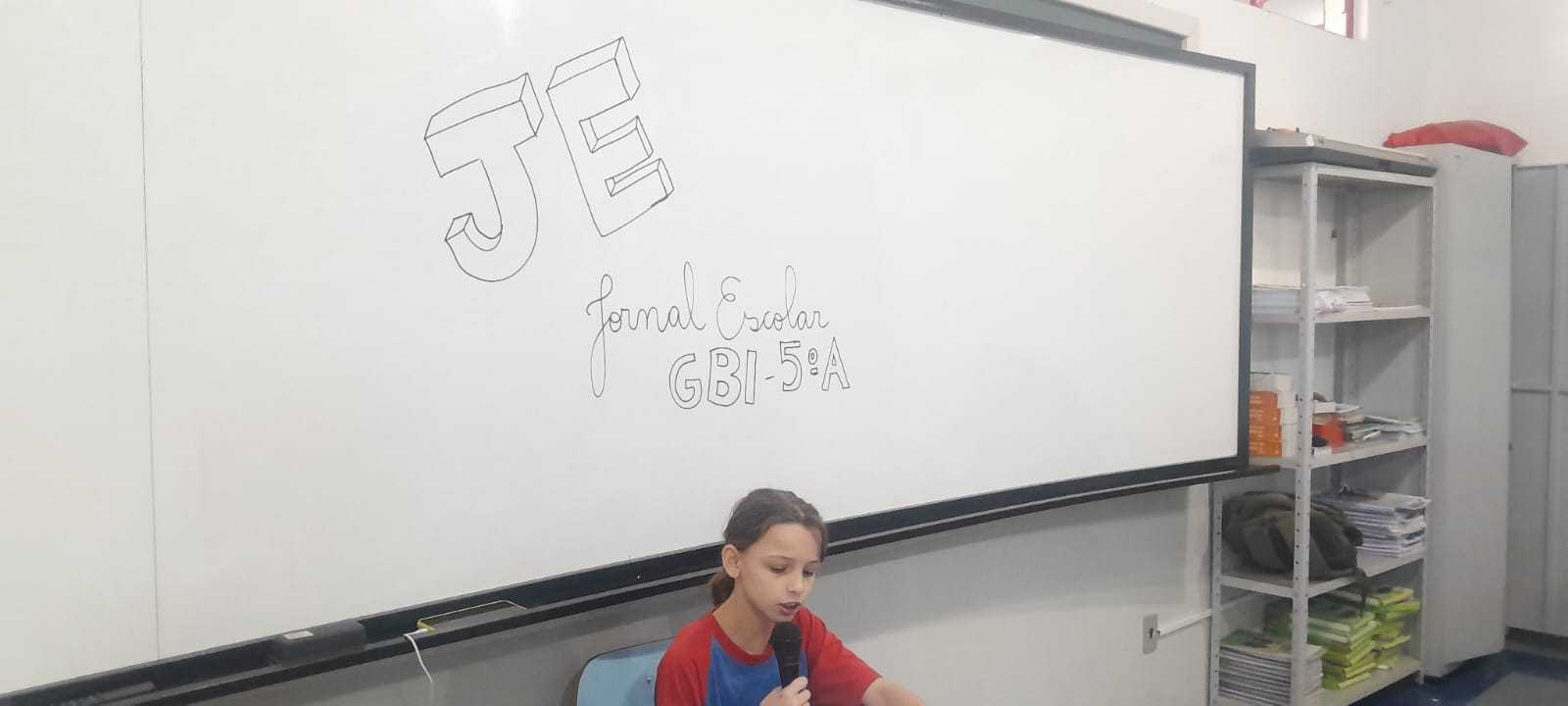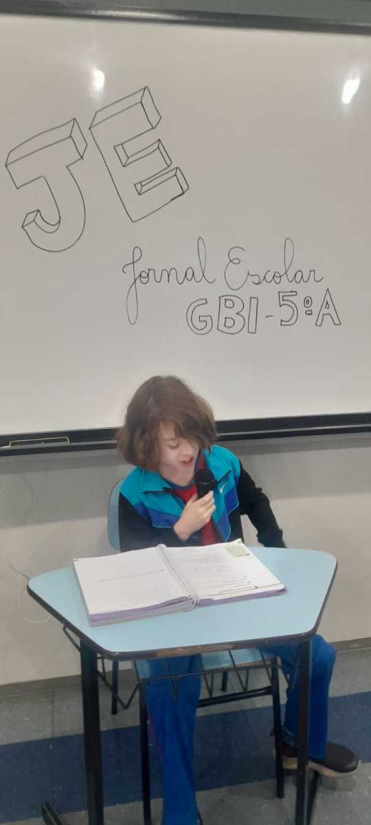 Após a pesquisa concluída, as crianças realizaram uma produção de texto jornalístico e apresentação de sua produção como jornalistas do Jornal Escolar GBI.