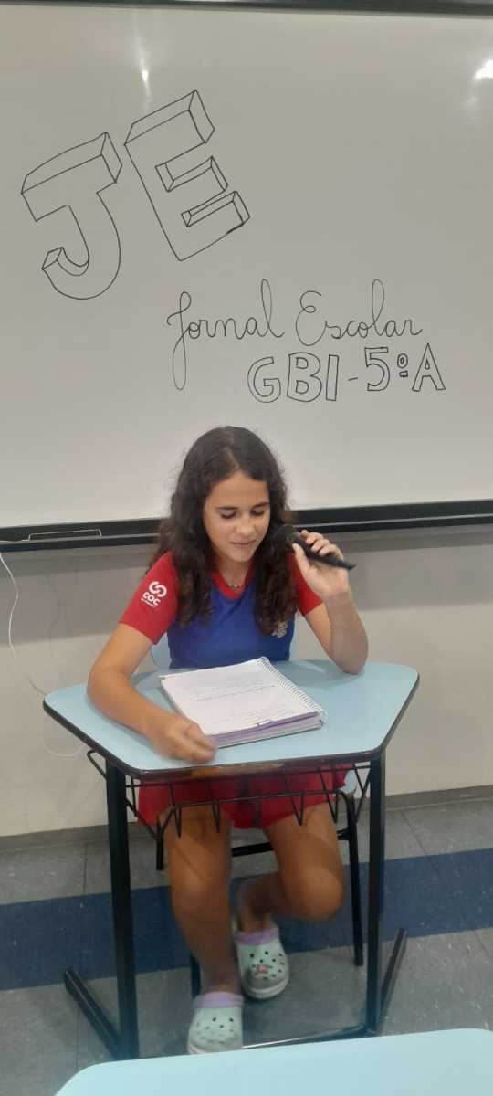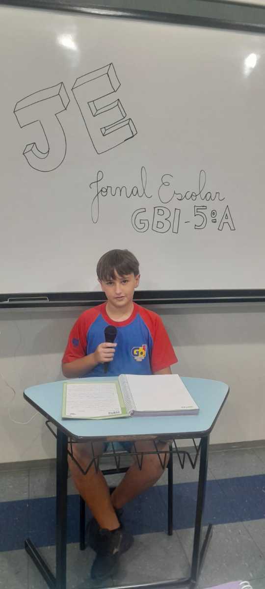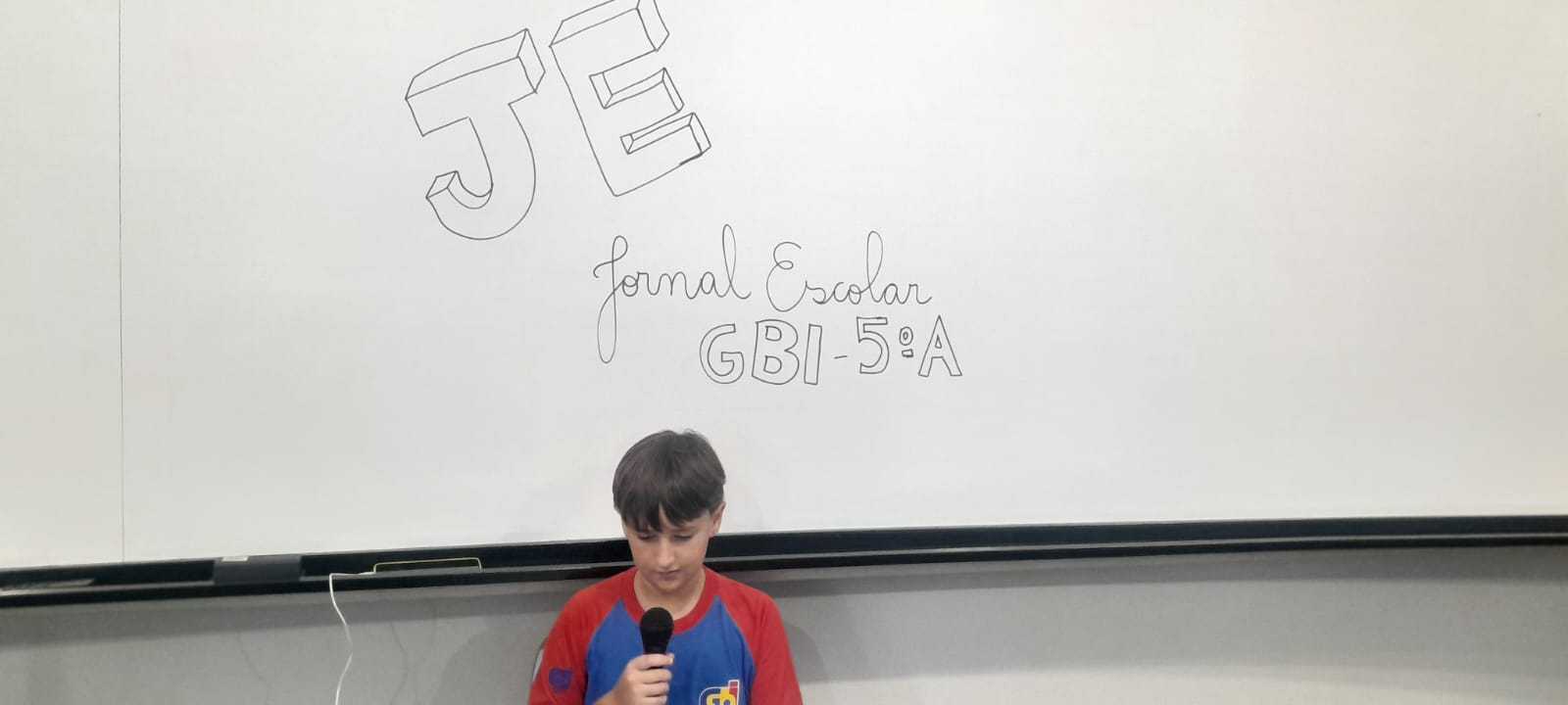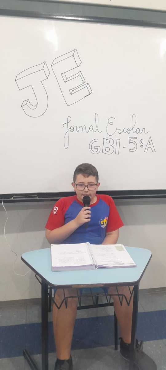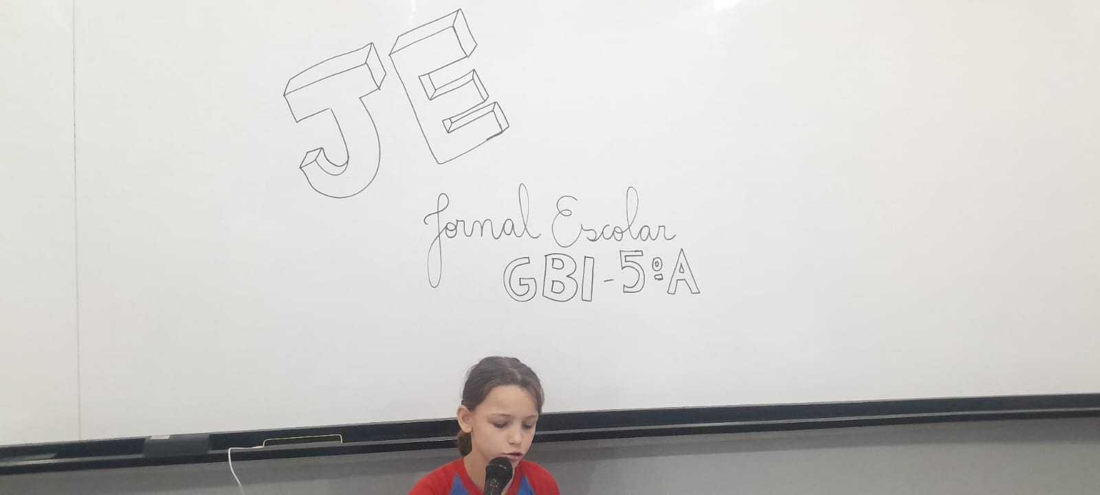 Após a pesquisa concluída, as crianças realizaram uma produção de texto jornalístico e apresentação de sua produção como jornalistas do Jornal Escolar GBI.