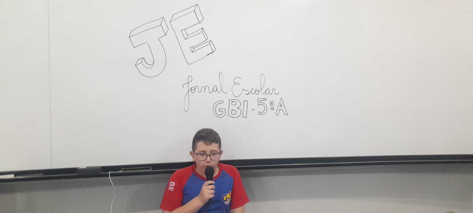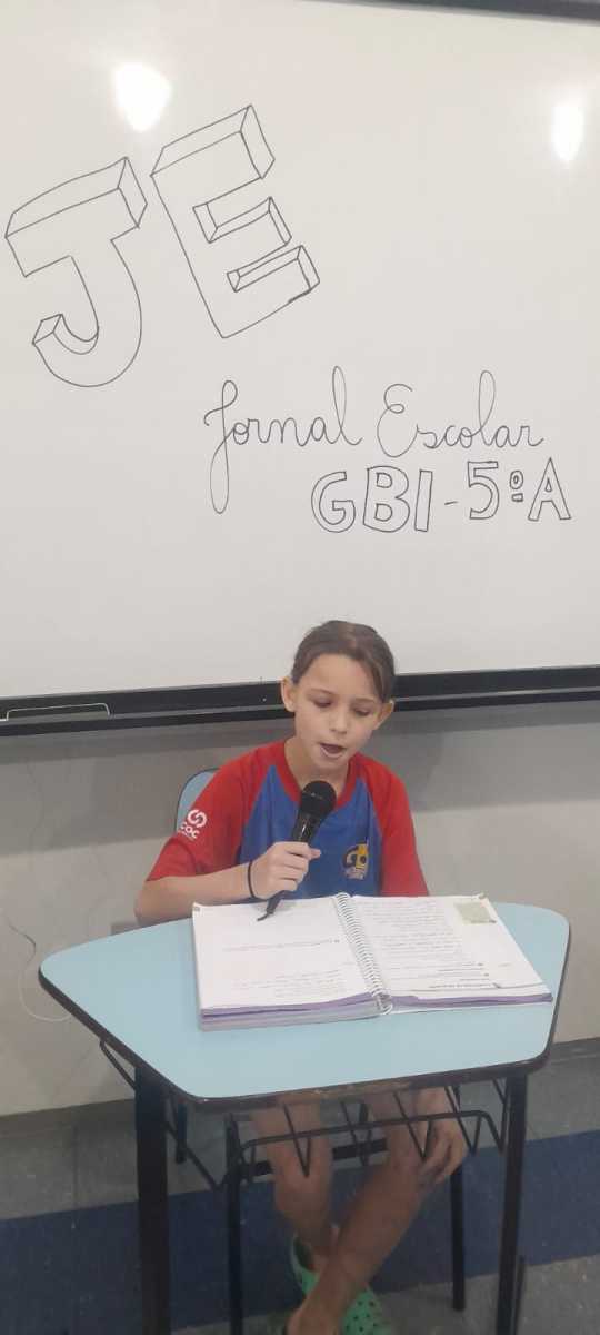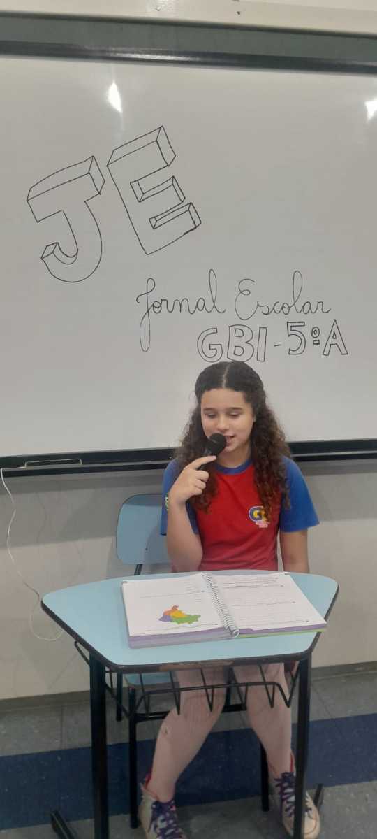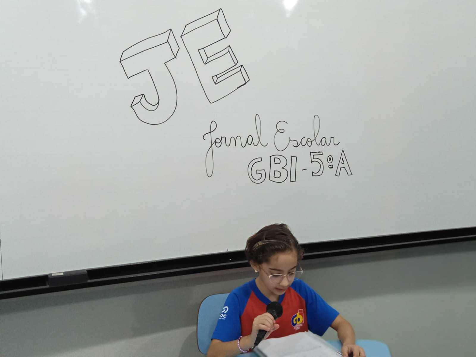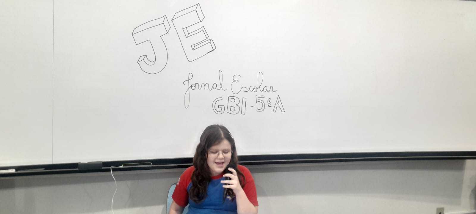 Após a pesquisa concluída, as crianças realizaram uma produção de texto jornalístico e apresentação de sua produção como jornalistas do Jornal Escolar GBI.