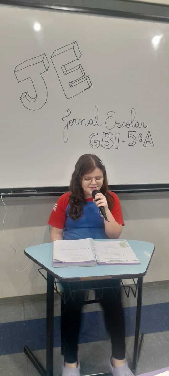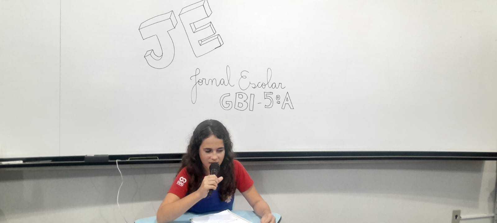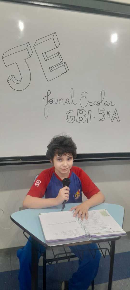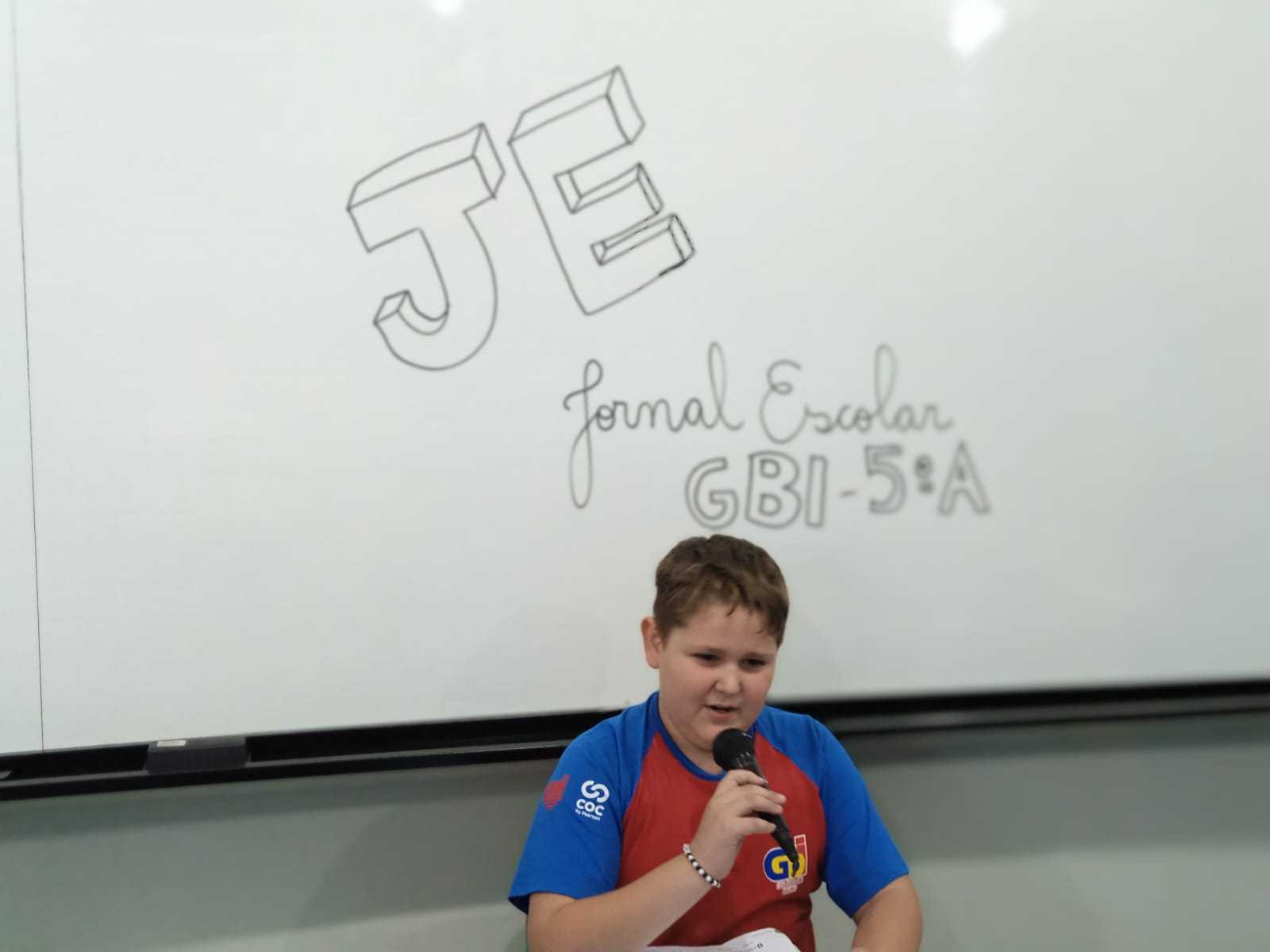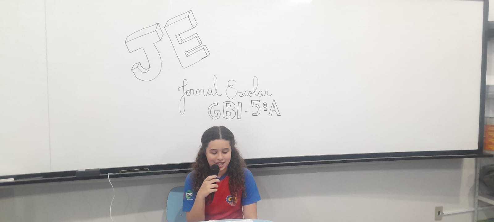 Após a pesquisa concluída, as crianças realizaram uma produção de texto jornalístico e apresentação de sua produção como jornalistas do Jornal Escolar GBI.