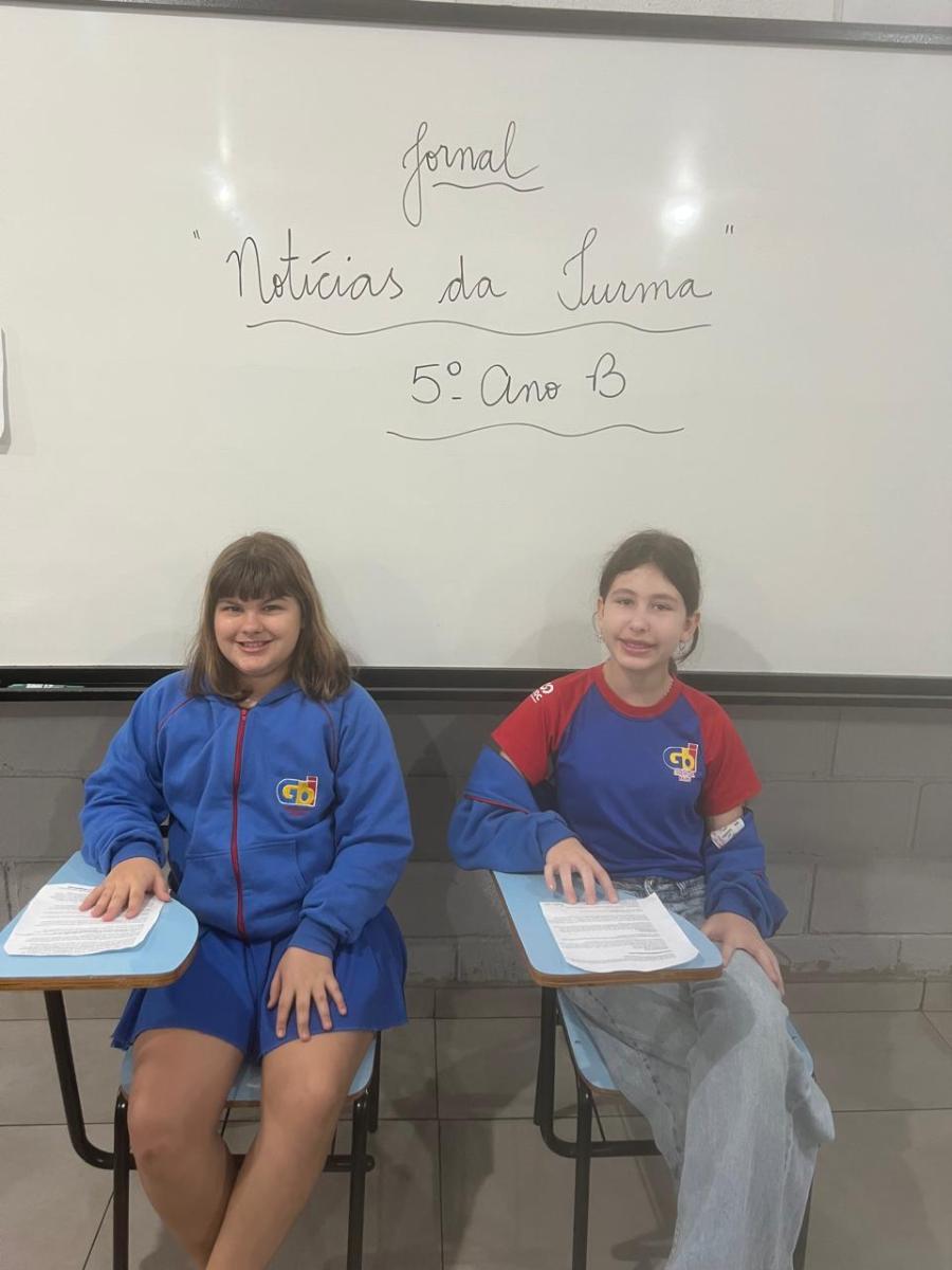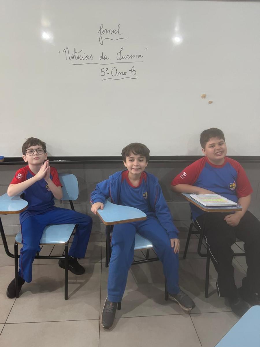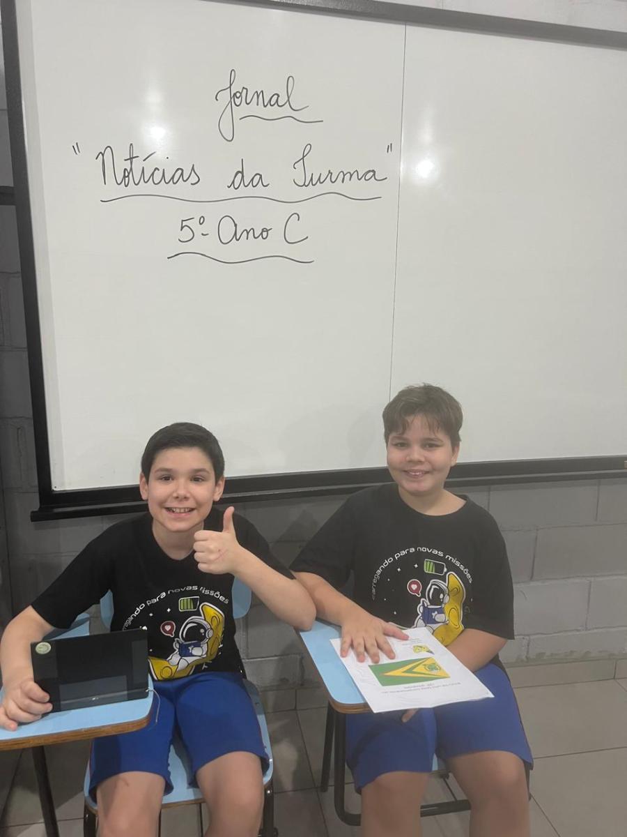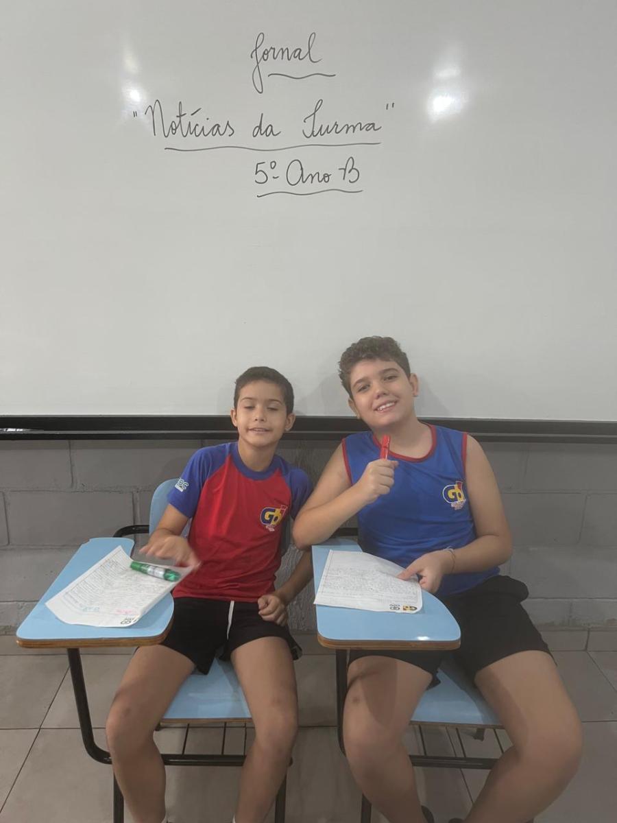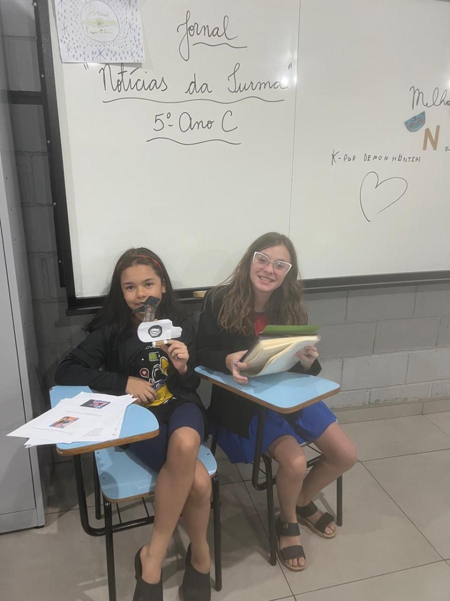“Oi, pessoal! Hoje a galera dos 5ºAnos, A, B e C vão falar e apresentar um texto jornalístico.
