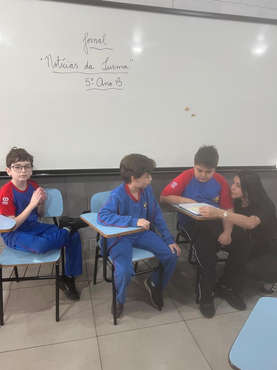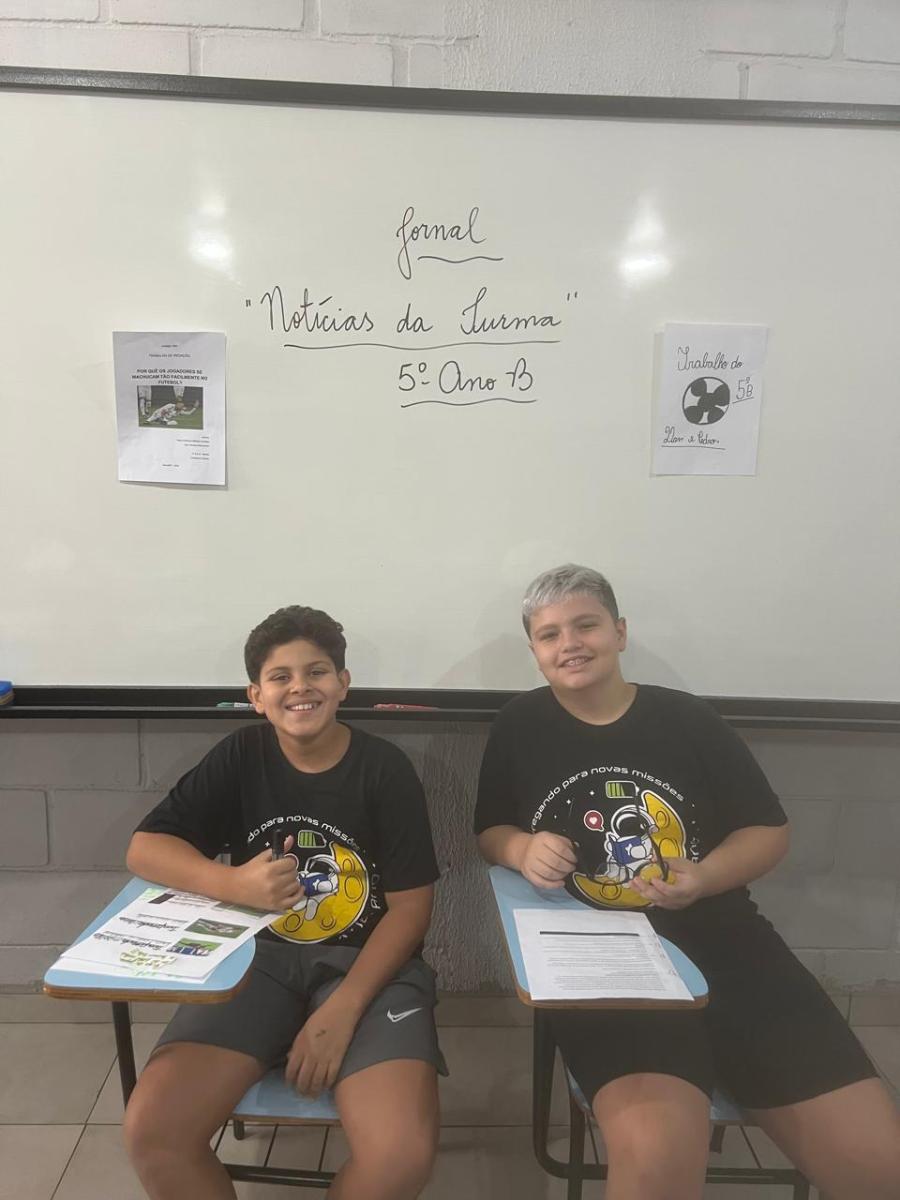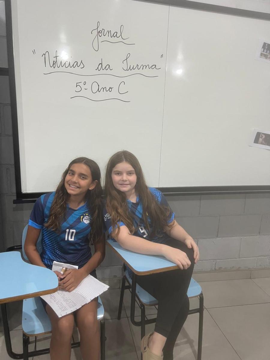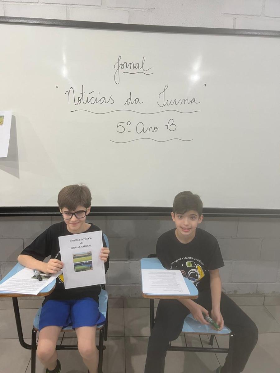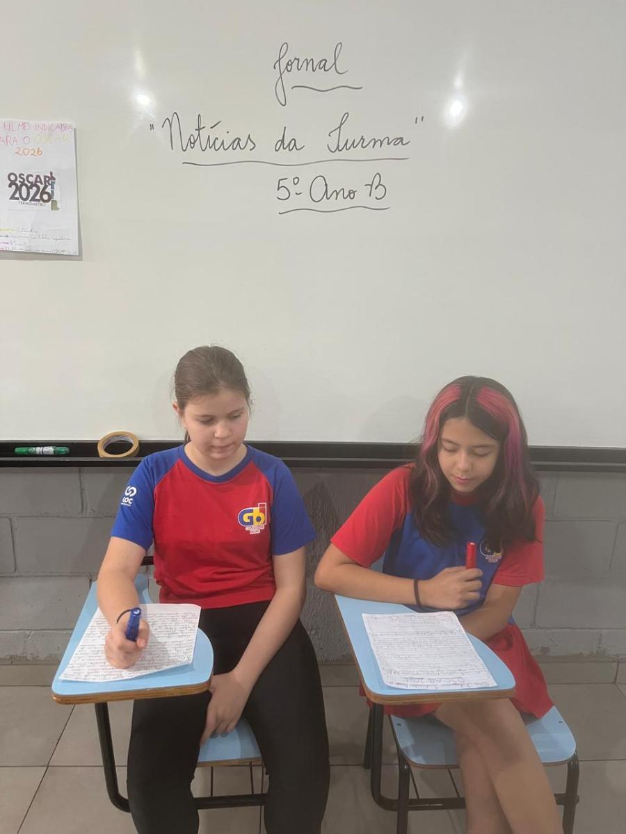 “Oi, pessoal! Hoje a galera dos 5ºAnos, A, B e C vão falar e apresentar um texto jornalístico.