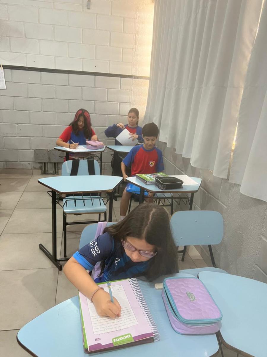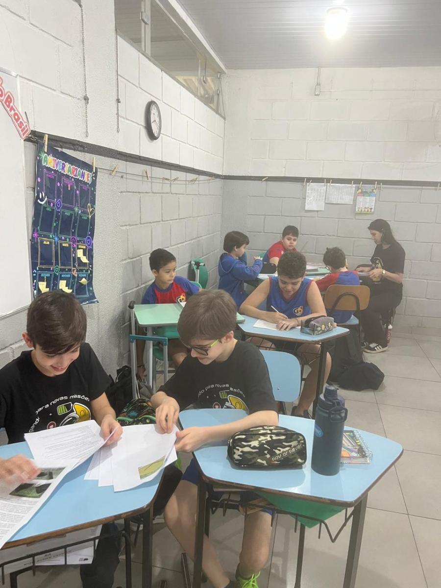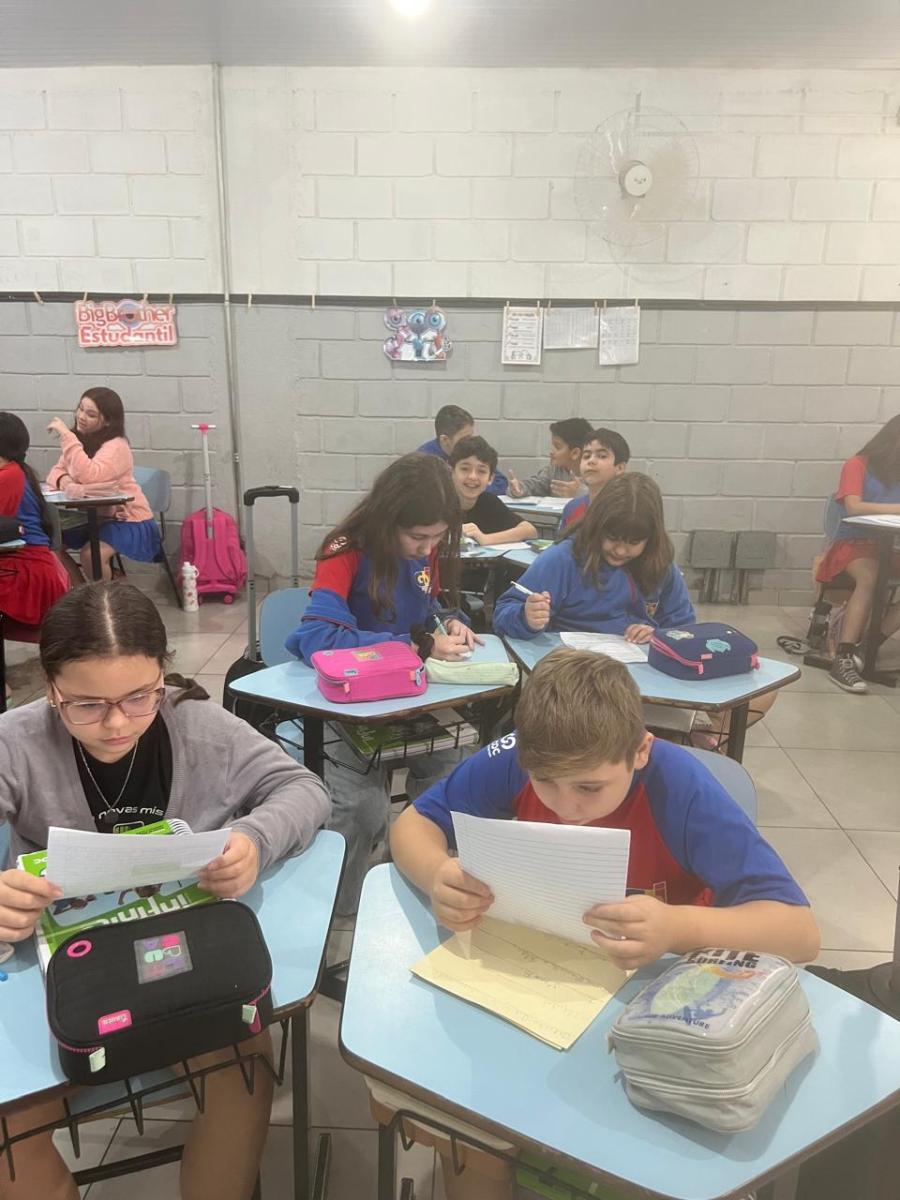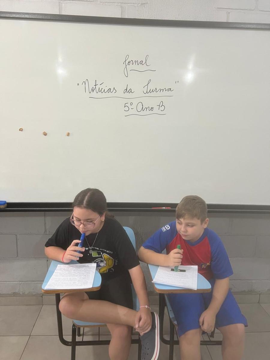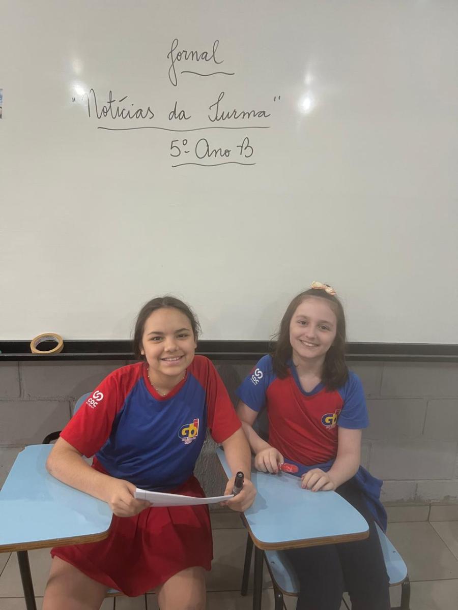 “Oi, pessoal! Hoje a galera dos 5ºAnos, A, B e C vão falar e apresentar um texto jornalístico.