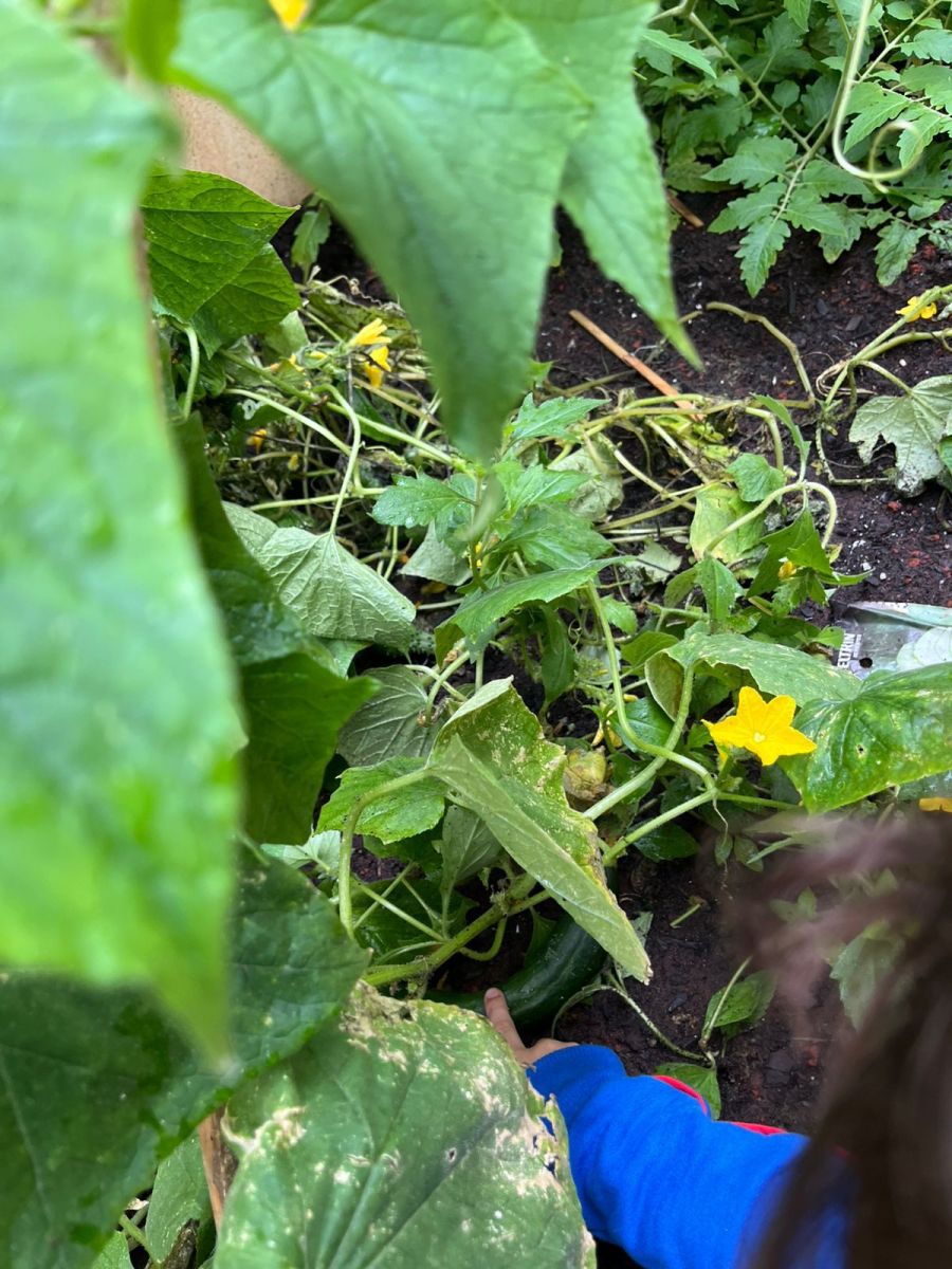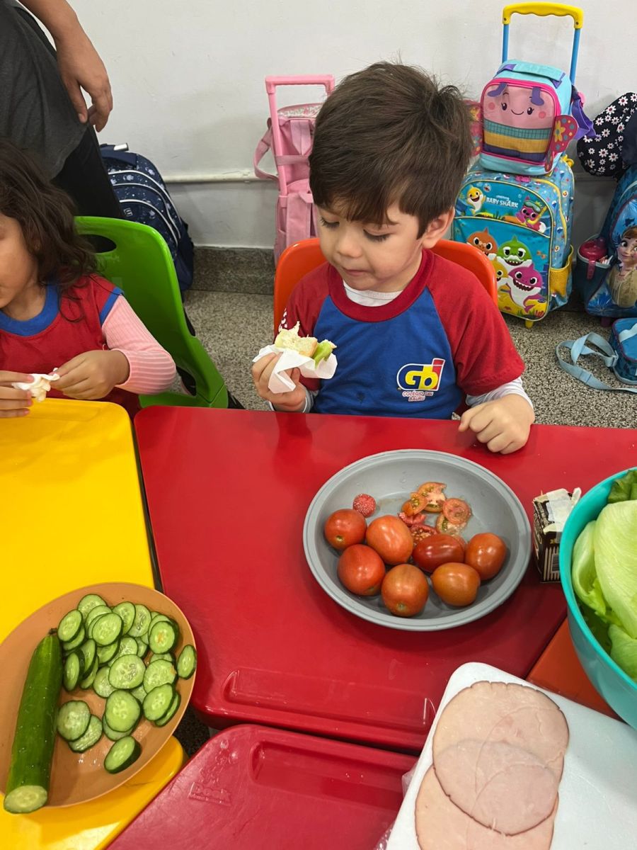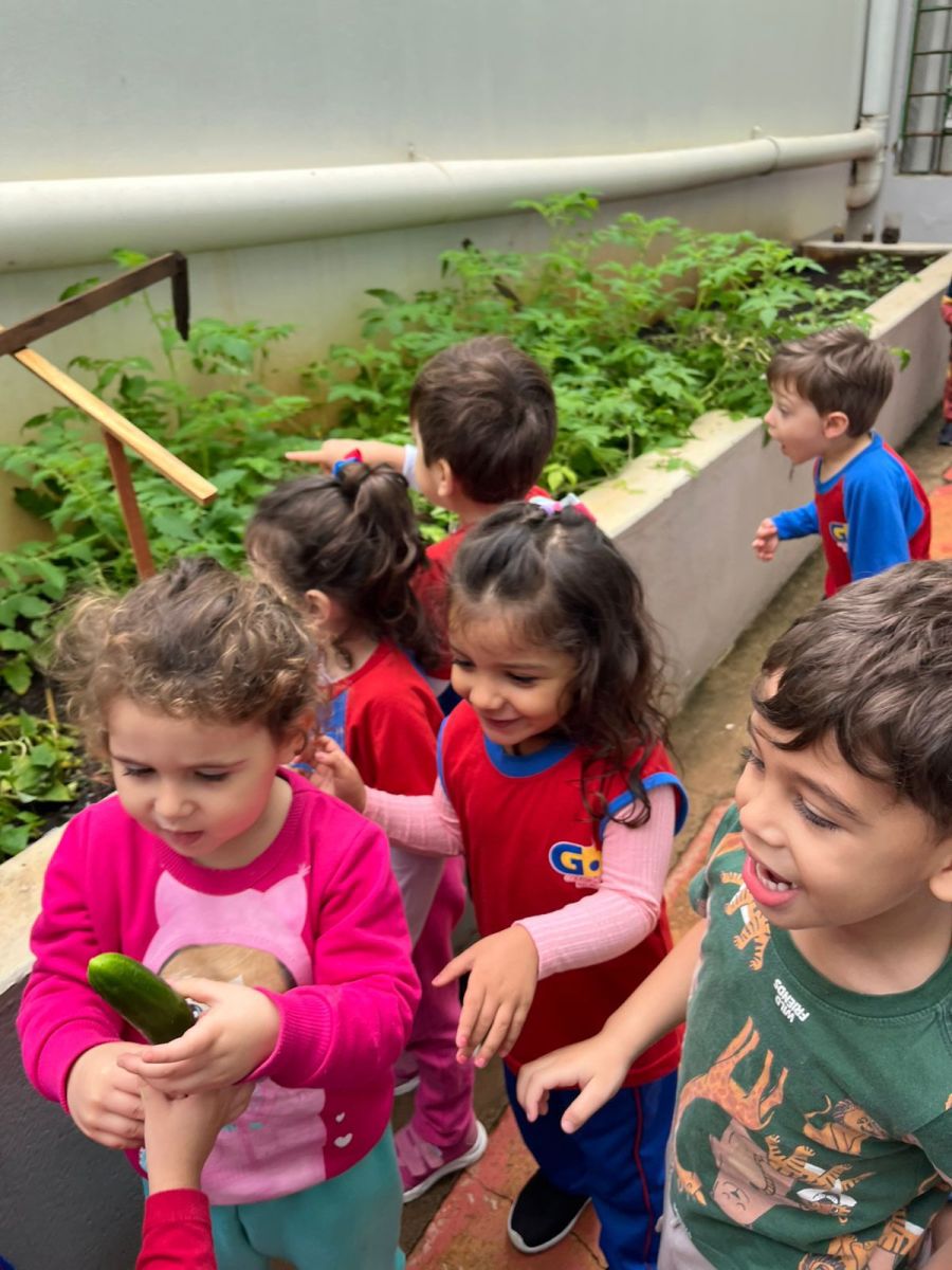 Durante o 1º semestre, a turma do Pré I plantou e cuidou das sementes de pepino com muito carinho, e para celebrar essa jornada, realizaram o Dia do Lanche Natural 🥪🥒