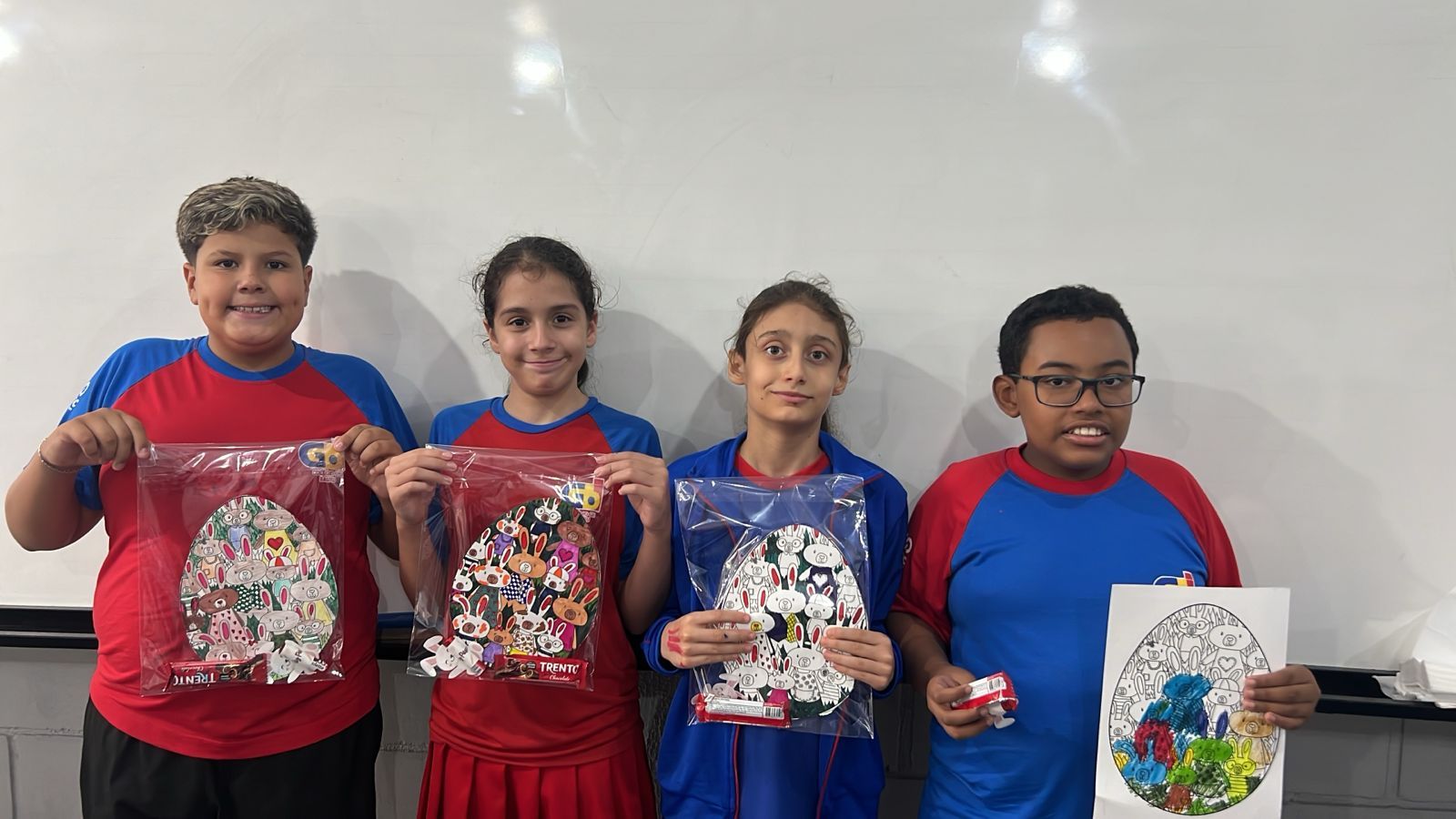 Nossos alunos do 5º ano confeccionaram lindos ovos, cheios de carinho e criatividade, para guardar no saquinho junto com seus presentes, preparados com muito amor pela escola e pela professora. 💛