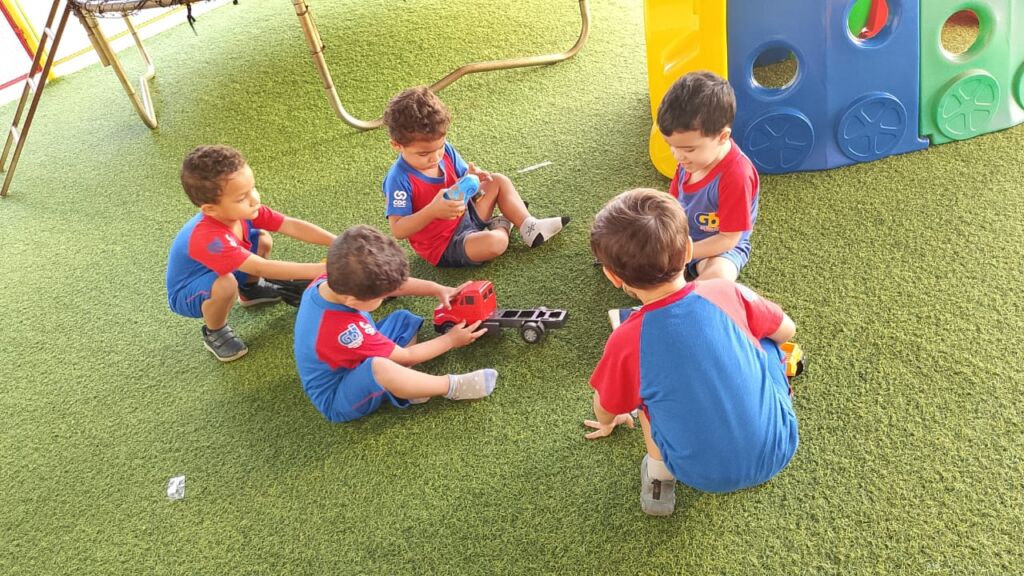 As crianças participaram da aula de inglês, da aula de artes e aproveitaram momentos de brincadeiras no Parque verde, explorando o escorregador e o pula-pula, sempre com muita alegria e entusiasmo.