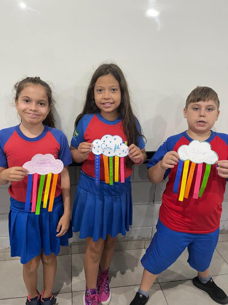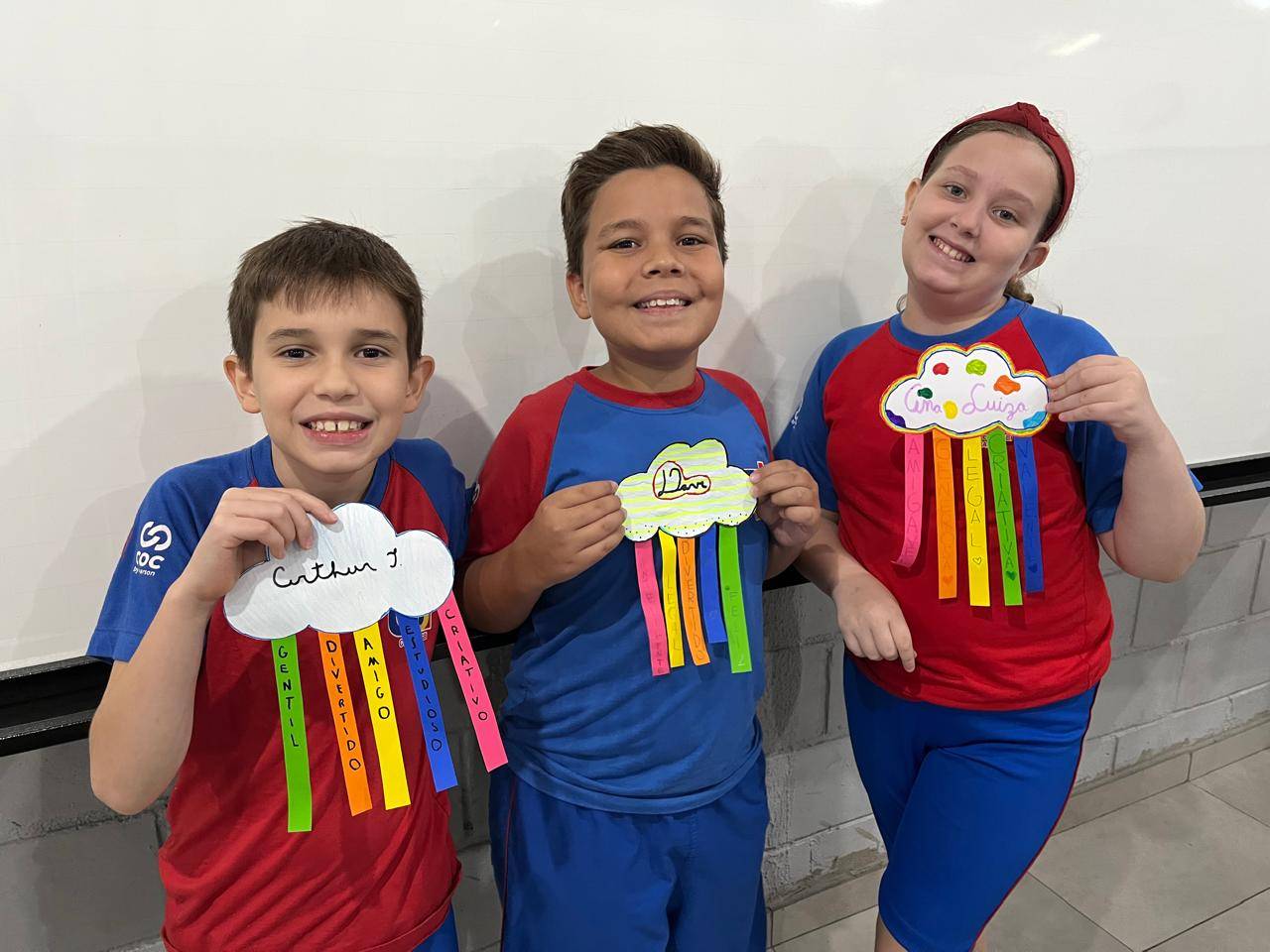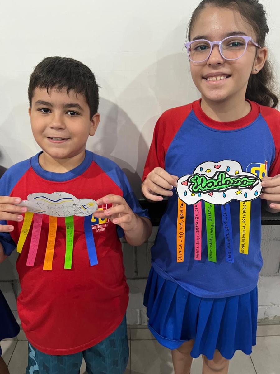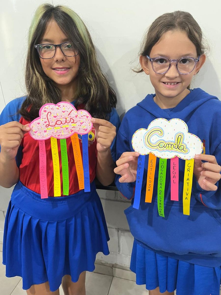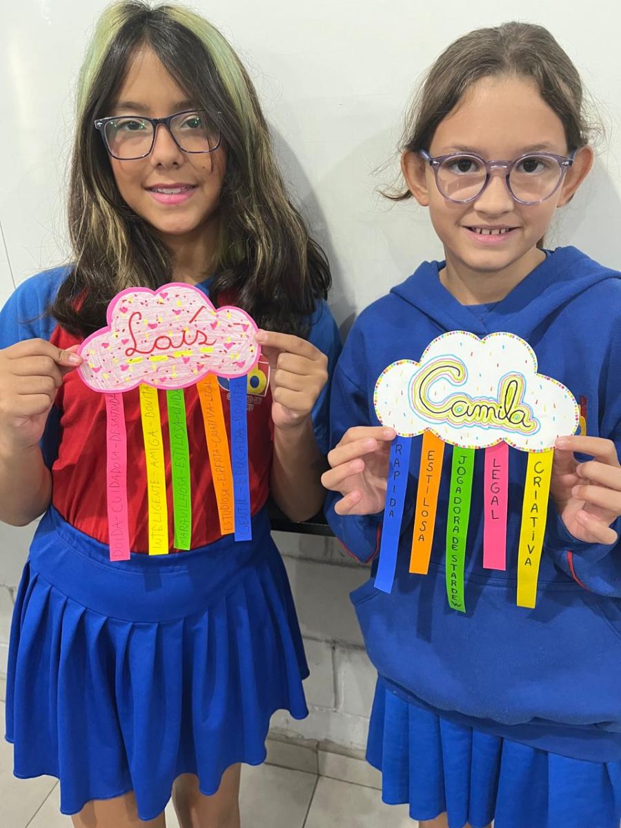 E assim os alunos do 5º ano escolheram a nuvem para serem representados, pois, por estarem sempre nas alturas, é um lembrete de como devemos manter a nossa autoestima, lá no alto.
