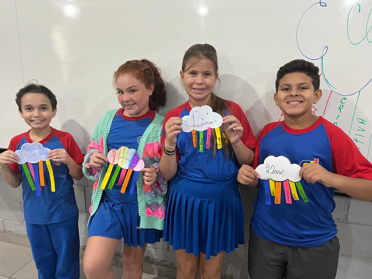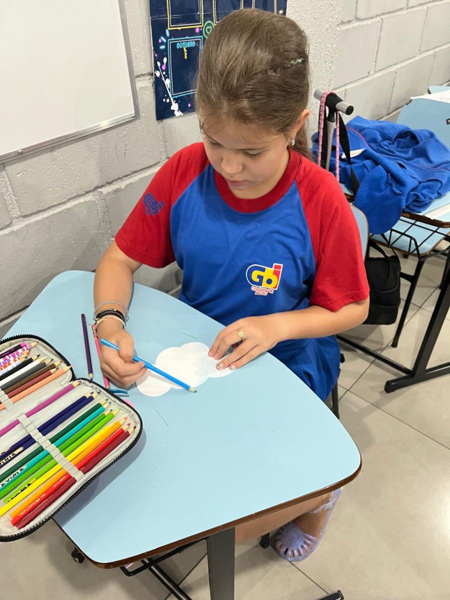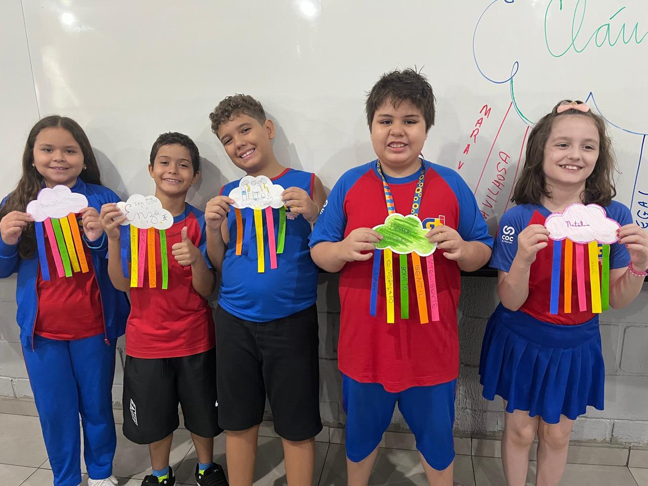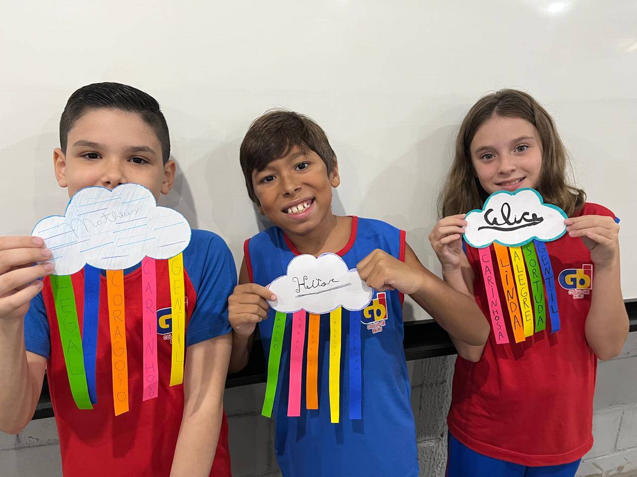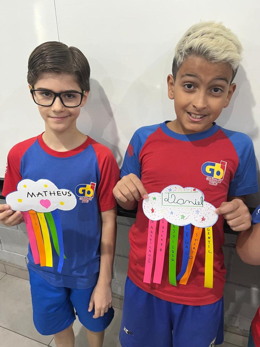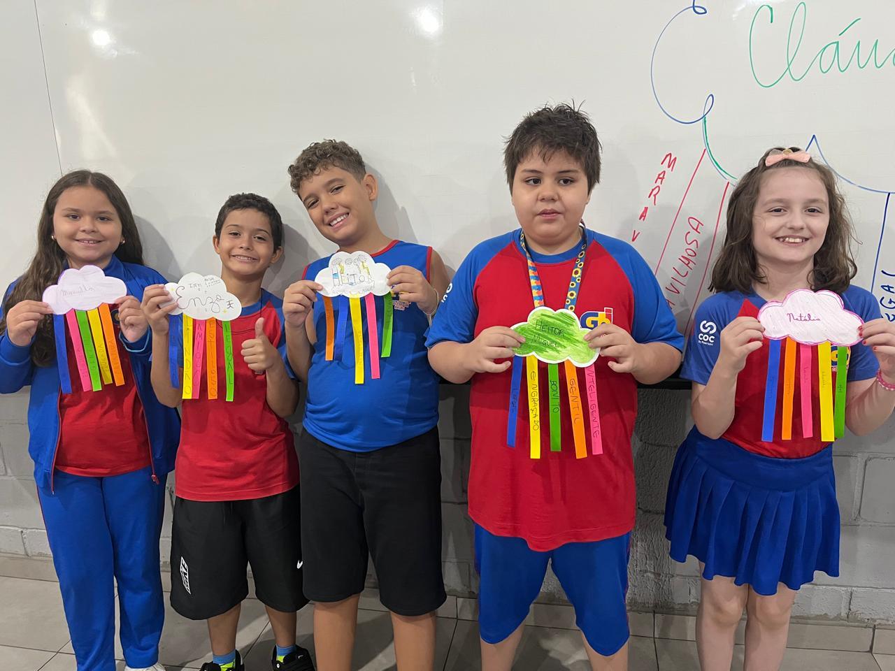 E assim os alunos do 5º ano escolheram a nuvem para serem representados, pois, por estarem sempre nas alturas, é um lembrete de como devemos manter a nossa autoestima, lá no alto.