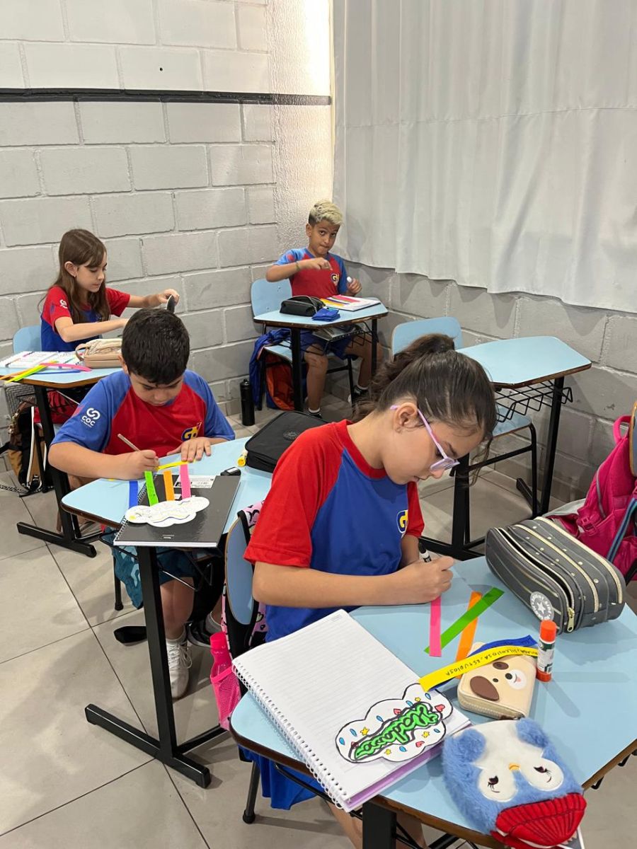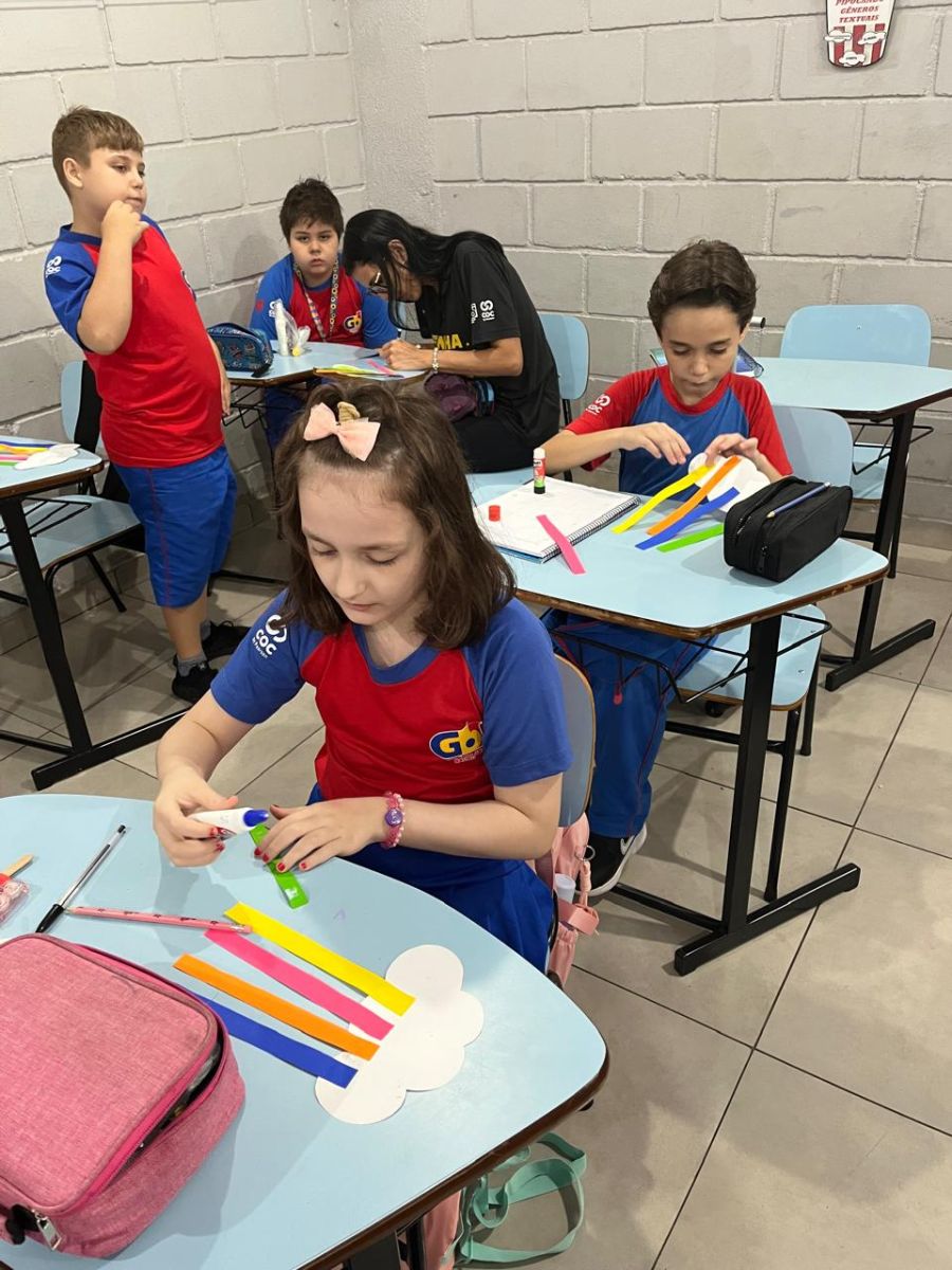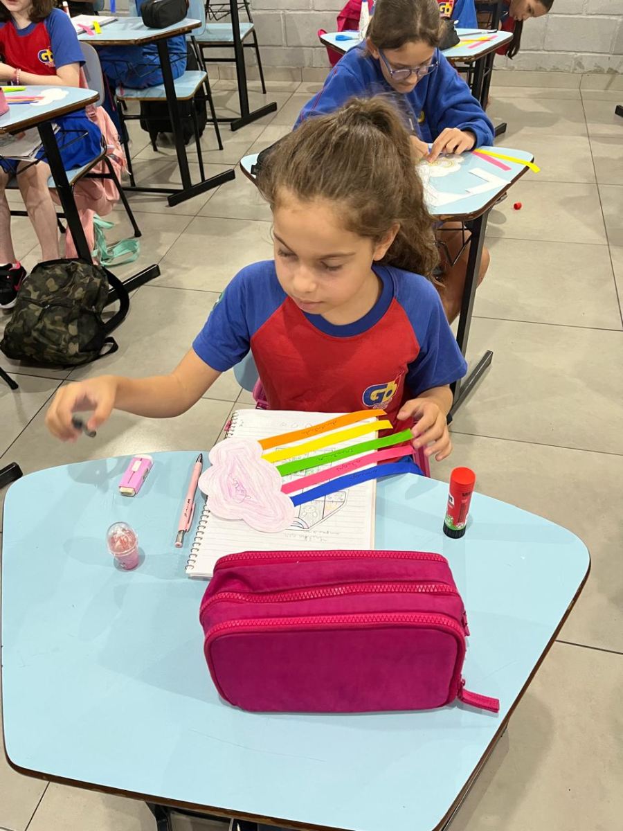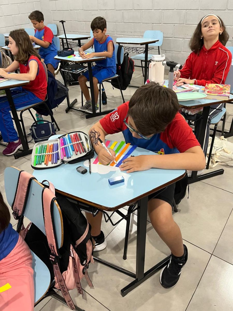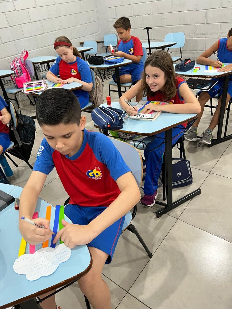 E assim os alunos do 5º ano escolheram a nuvem para serem representados, pois, por estarem sempre nas alturas, é um lembrete de como devemos manter a nossa autoestima, lá no alto.