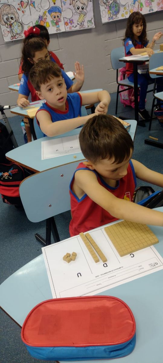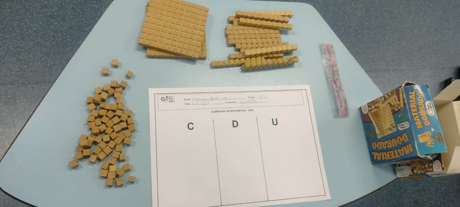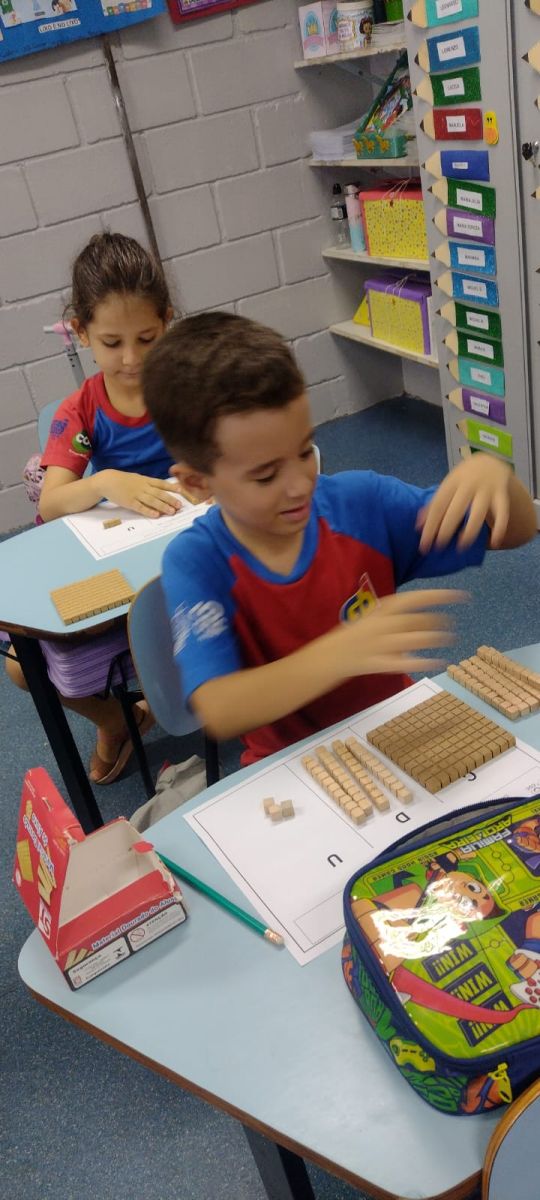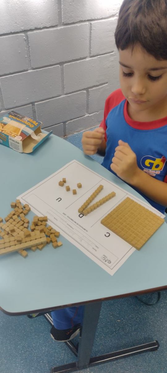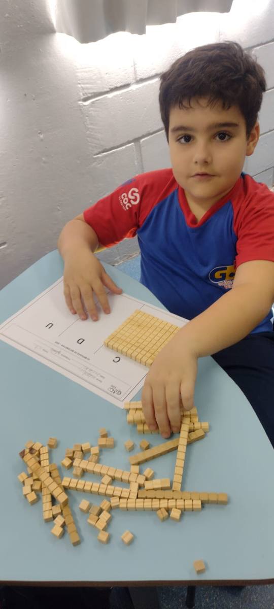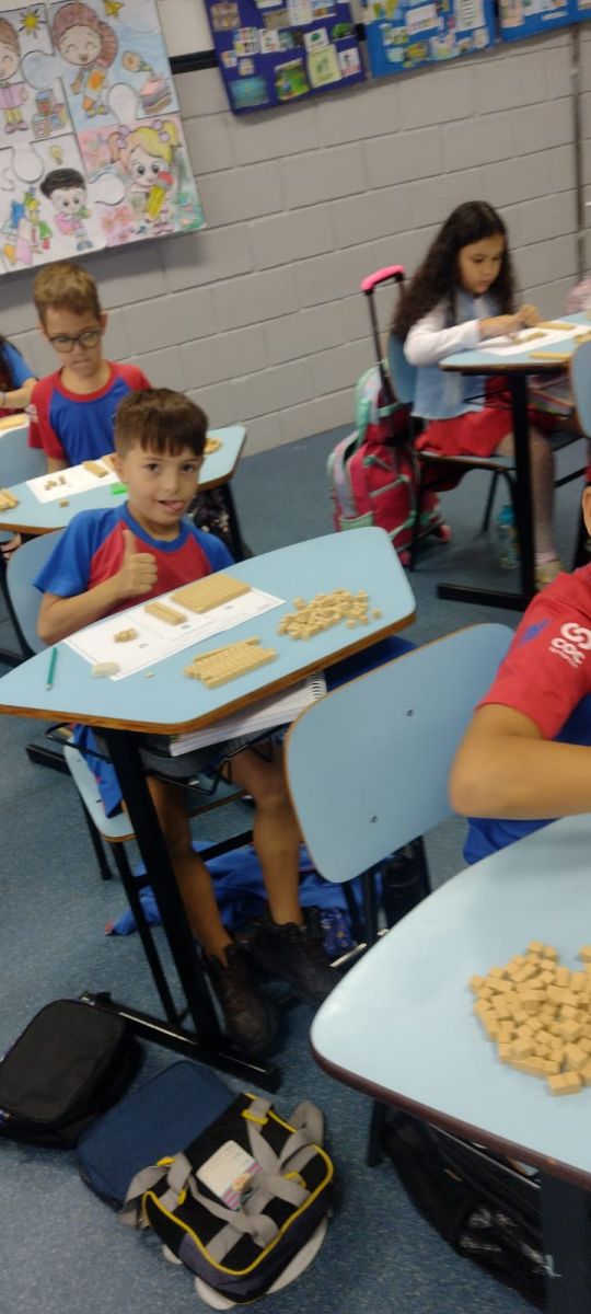 Os alunos dos 2º anos A, B, C e D participaram de uma divertida Olimpíada de Matemática onde reforçaram os estudos de Centena, Dezena e Unidade com o material dourado.