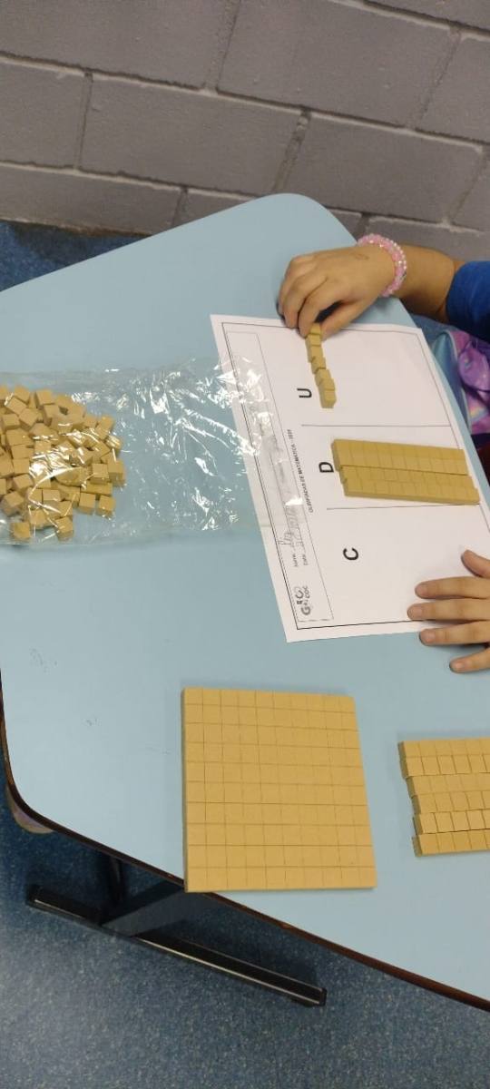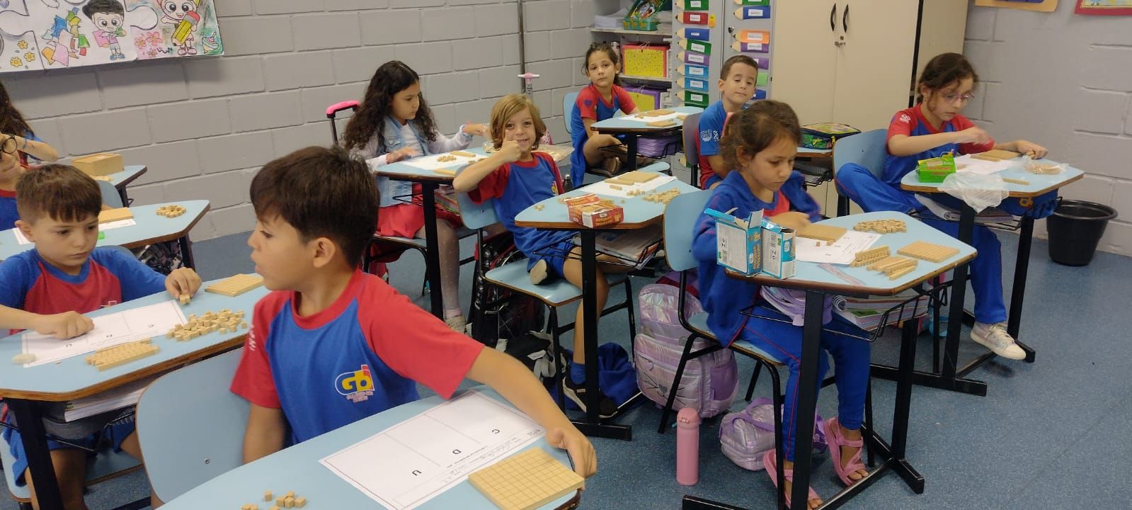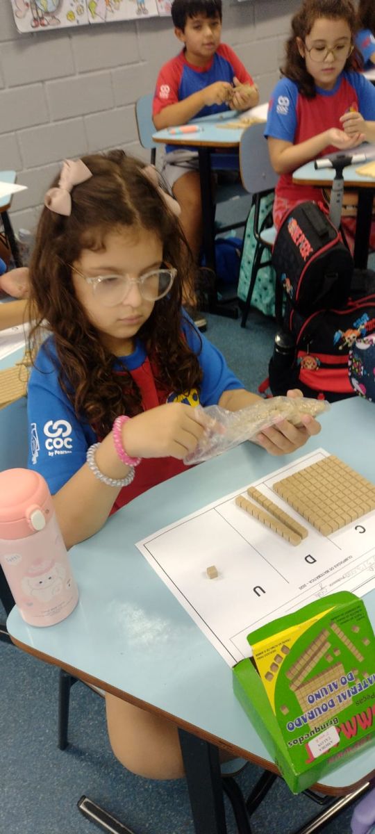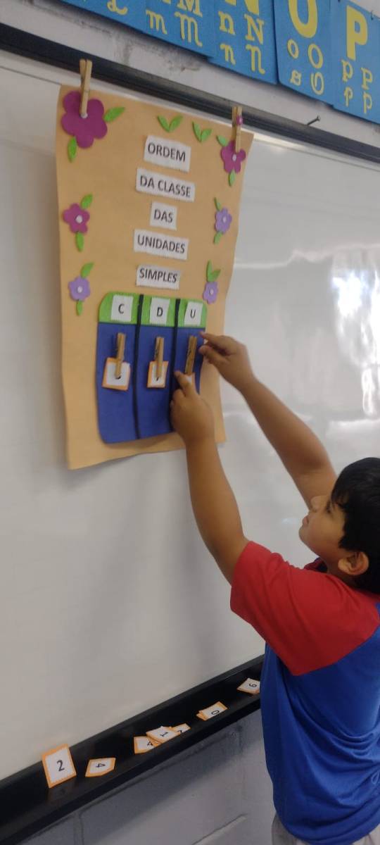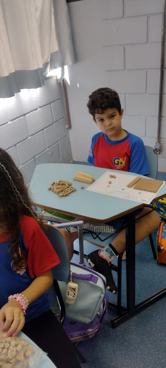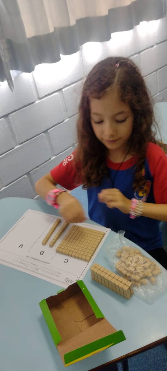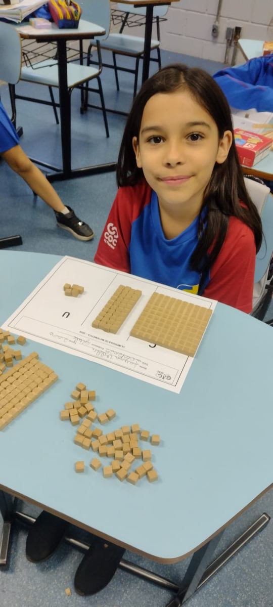 Os alunos dos 2º anos A, B, C e D participaram de uma divertida Olimpíada de Matemática onde reforçaram os estudos de Centena, Dezena e Unidade com o material dourado.