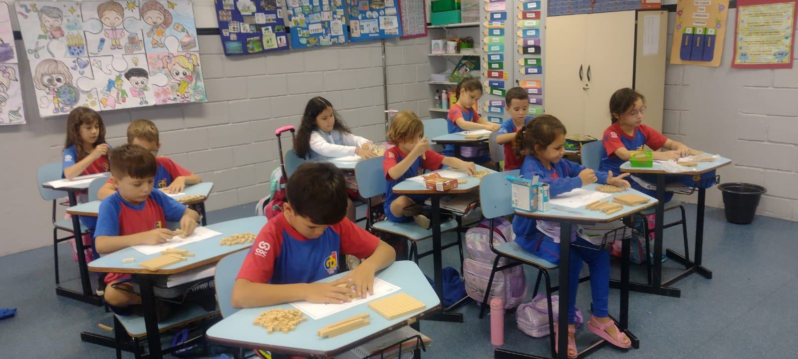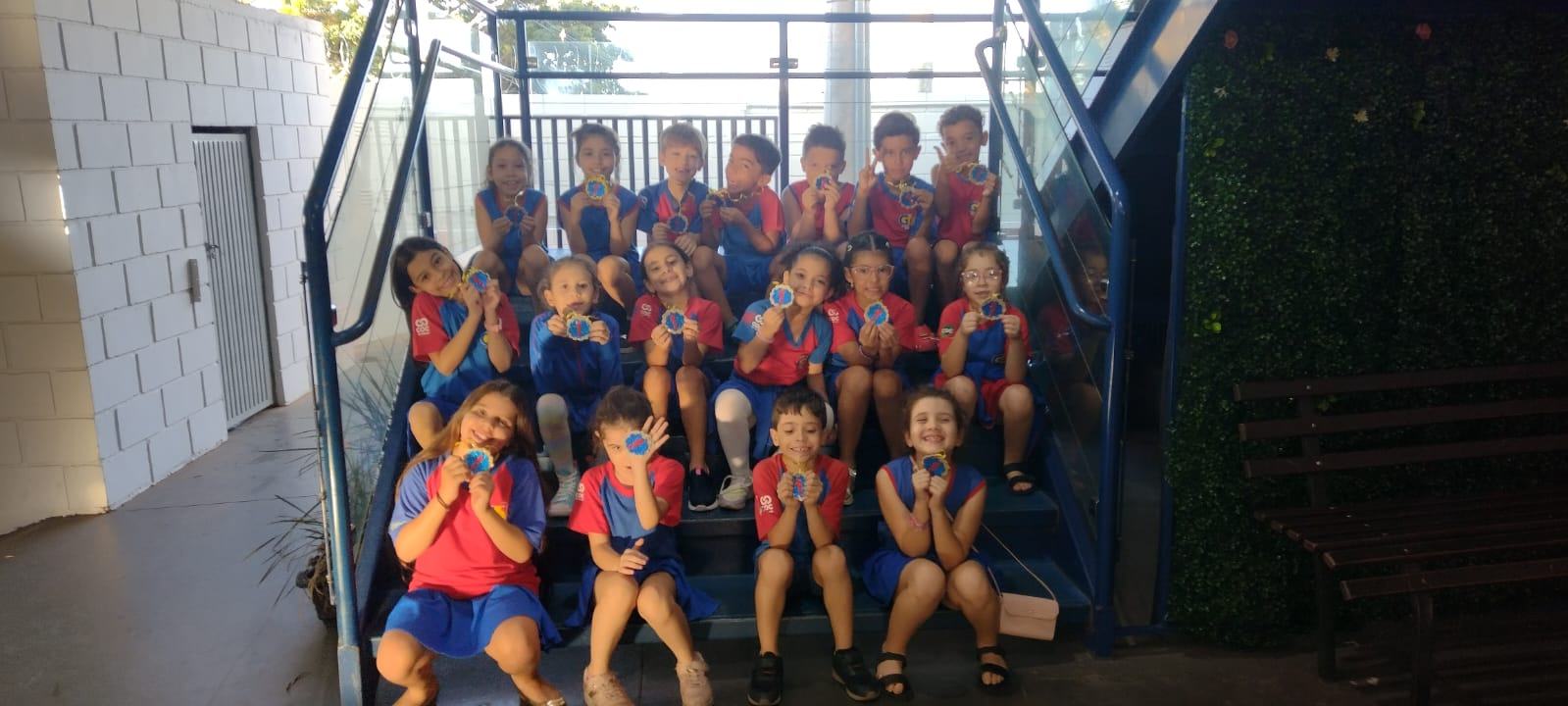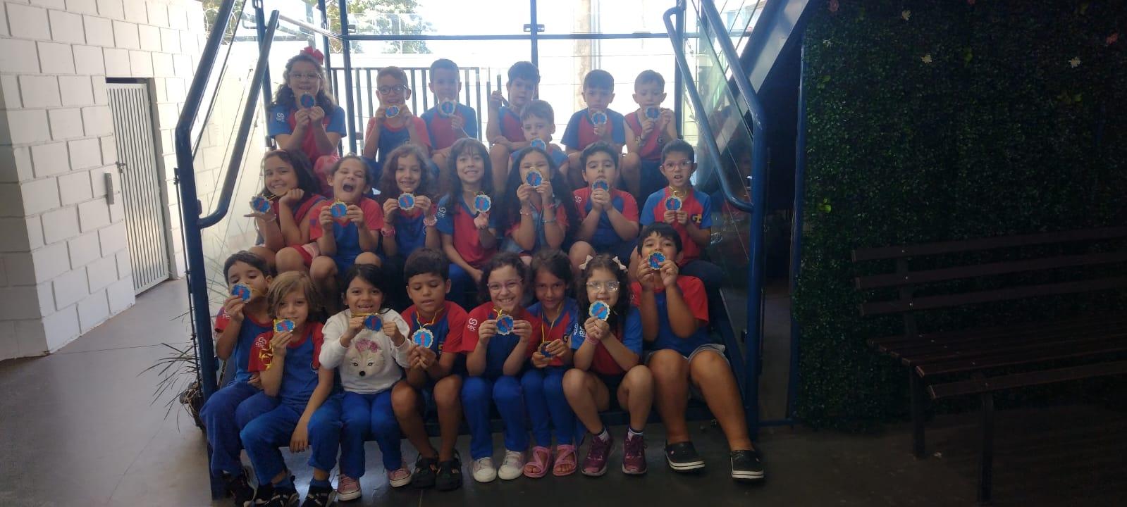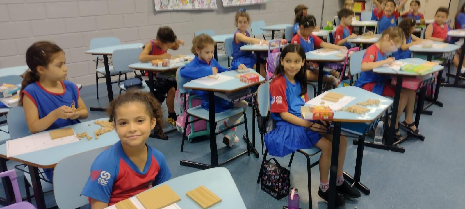 Os alunos dos 2º anos A, B, C e D participaram de uma divertida Olimpíada de Matemática onde reforçaram os estudos de Centena, Dezena e Unidade com o material dourado.
