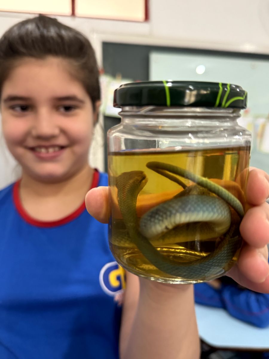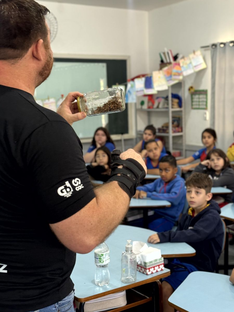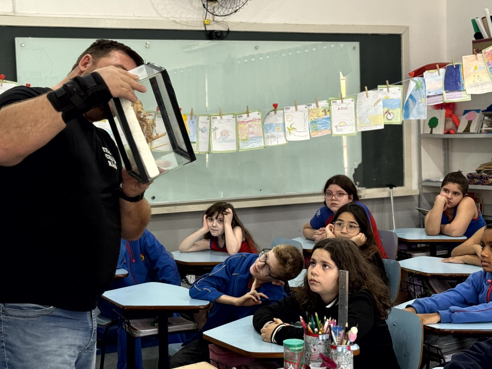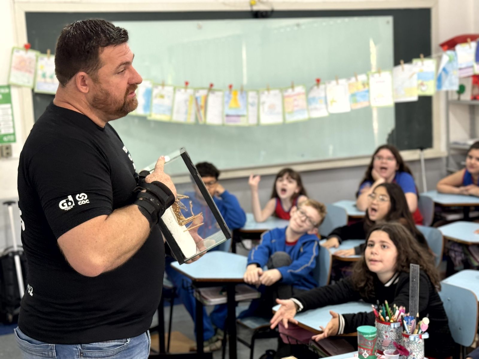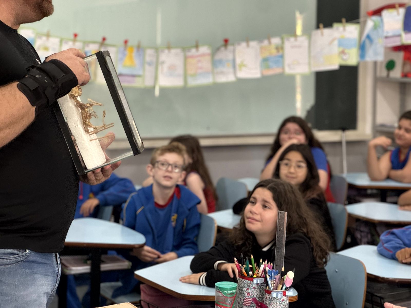 Os alunos do 4º ano tiveram a oportunidade de vivenciar uma experiência única com a presença do professor Éric, especialista em Biologia, que trouxe para a sala seus animais vertebrados e invertebrados. A atividade possibilitou a ampliação das habilidades de observação, investigação e análise crítica (BNCC – Ciências), favorecendo a curiosidade, o pensamento científico e a compreensão da biodiversidade.