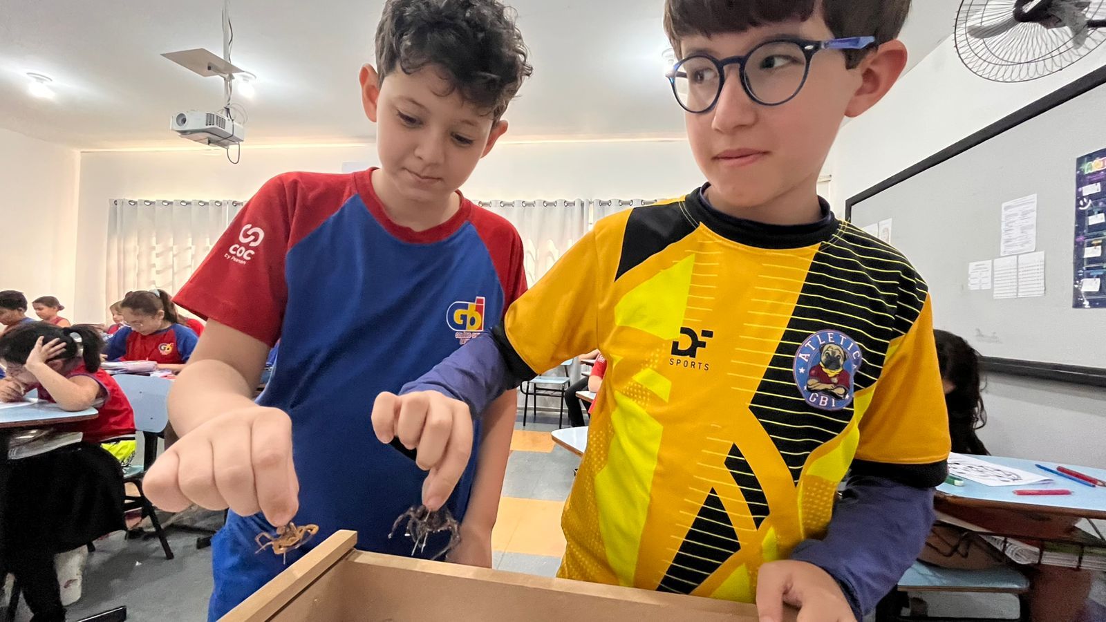 Os alunos do 4º ano tiveram a oportunidade de vivenciar uma experiência única com a presença do professor Éric, especialista em Biologia, que trouxe para a sala seus animais vertebrados e invertebrados. A atividade possibilitou a ampliação das habilidades de observação, investigação e análise crítica (BNCC – Ciências), favorecendo a curiosidade, o pensamento científico e a compreensão da biodiversidade.