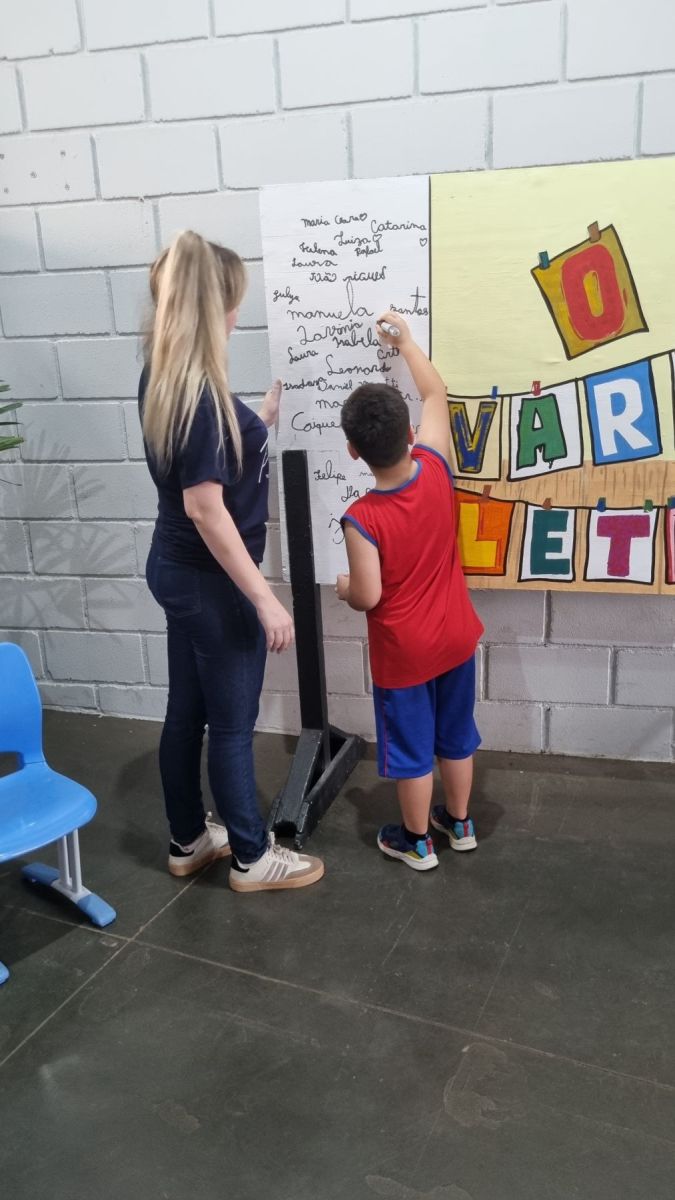 Cada criança escolheu uma letra do alfabeto para trabalhar em casa, junto com a família. Essa letra foi decorada de forma criativa e trouxe consigo uma história: o motivo da escolha, como foi feita e o que representava para a criança. Na escola, tivemos a oportunidade de compartilhar esses momentos, valorizando o empenho e a dedicação de cada família.