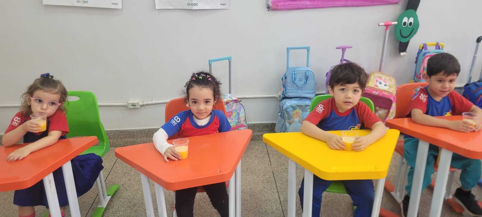 Vivenciamos uma experiência muito gostosa na aula dessa semana: a preparação do suco de laranja 🍊.