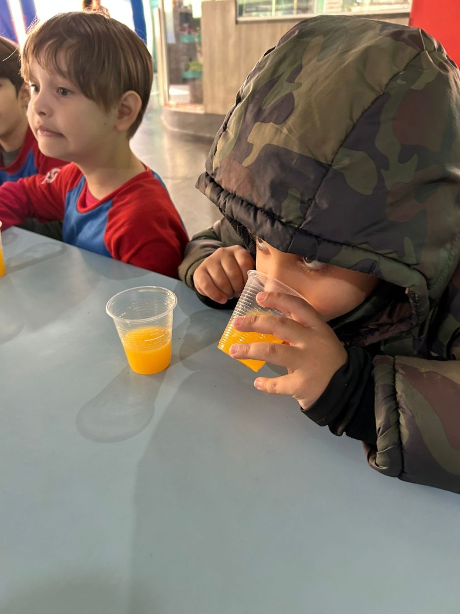 Os alunos participaram da degustação de dois tipos de sucos: um natural (in natura) e outro industrializado. A proposta faz parte do conteúdo sobre alimentação saudável e industrializada que estamos trabalhando em sala.