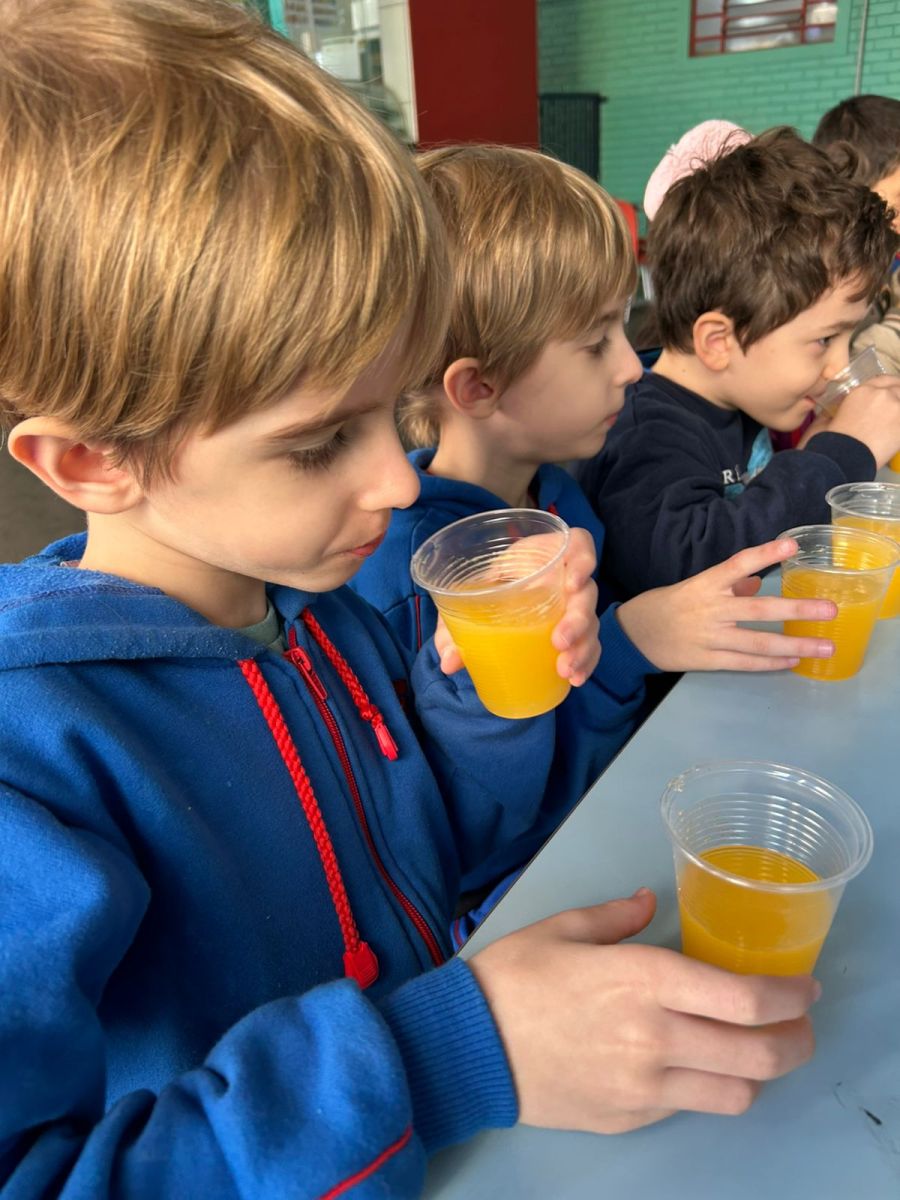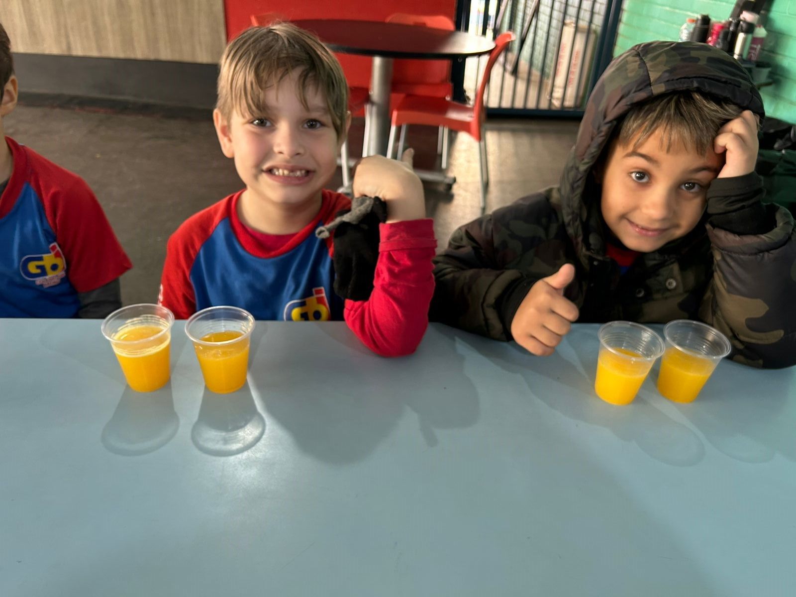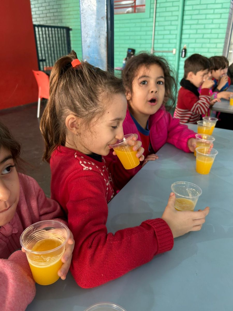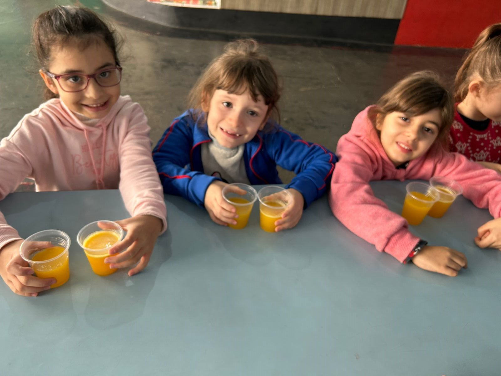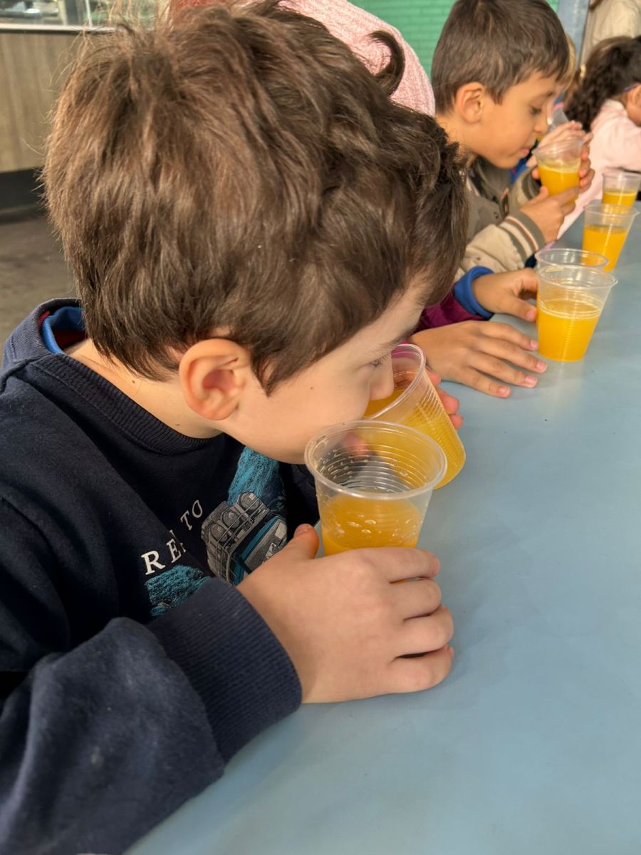 Ambos os sucos foram preparados junto com os alunos, para que também observassem as etapas e os ingredientes envolvidos em cada um. Foi um momento rico, divertido e de muito aprendizado! 🍊✨