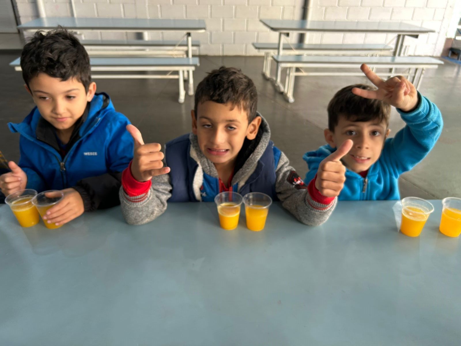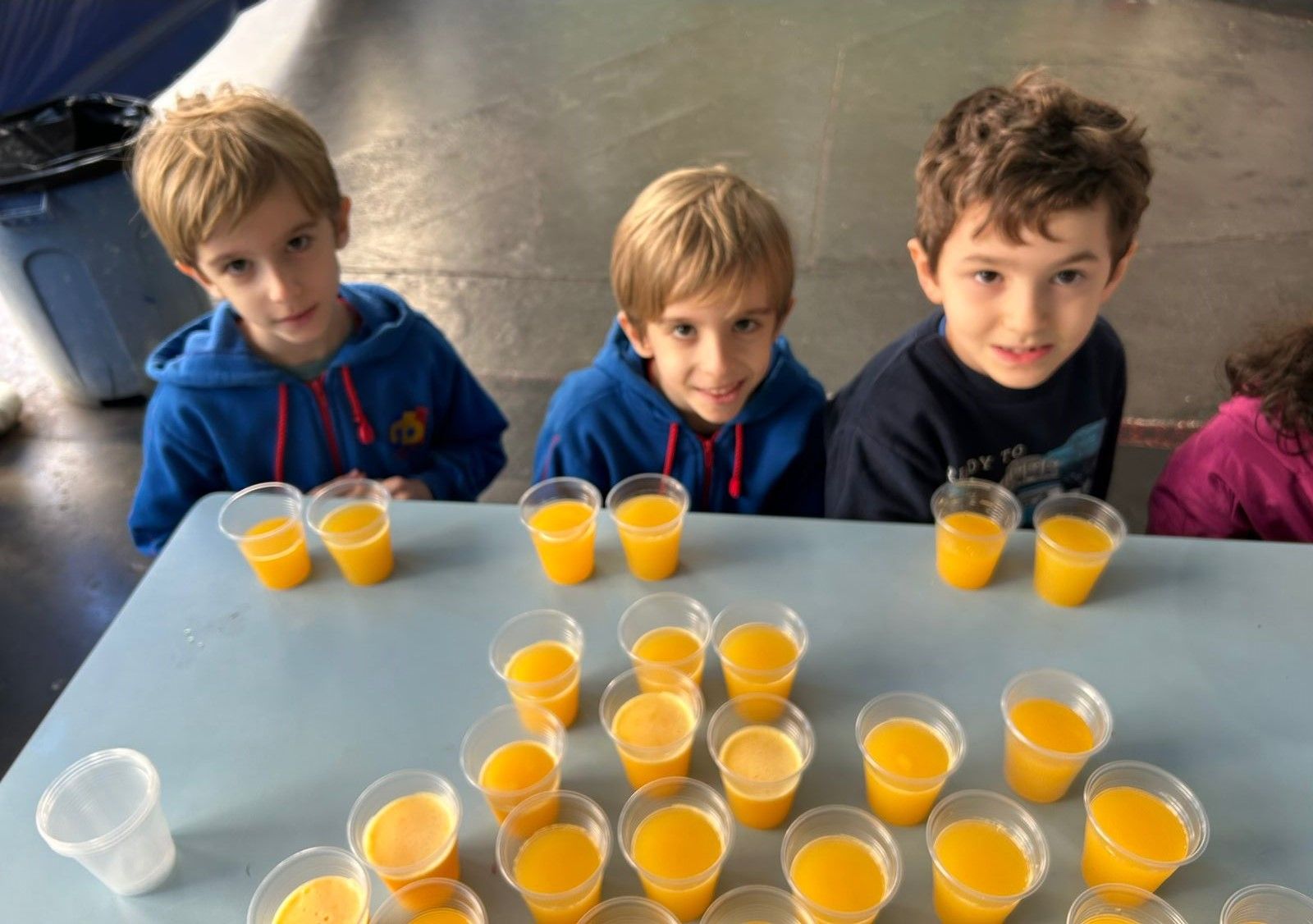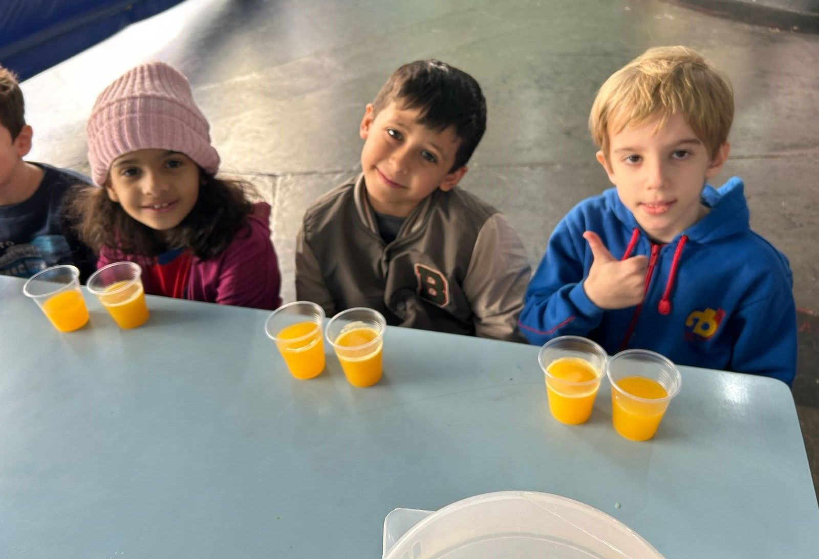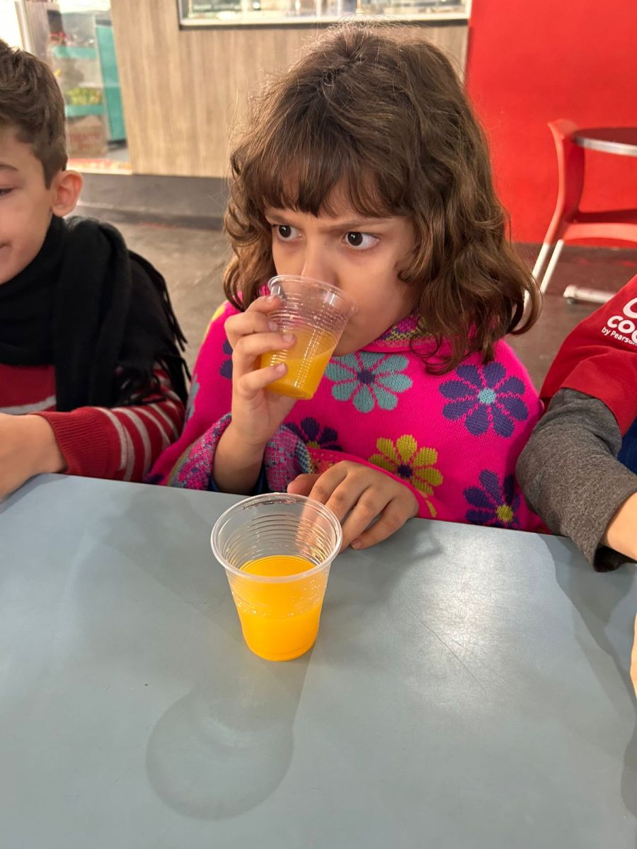 Ambos os sucos foram preparados junto com os alunos, para que também observassem as etapas e os ingredientes envolvidos em cada um. Foi um momento rico, divertido e de muito aprendizado! 🍊✨
