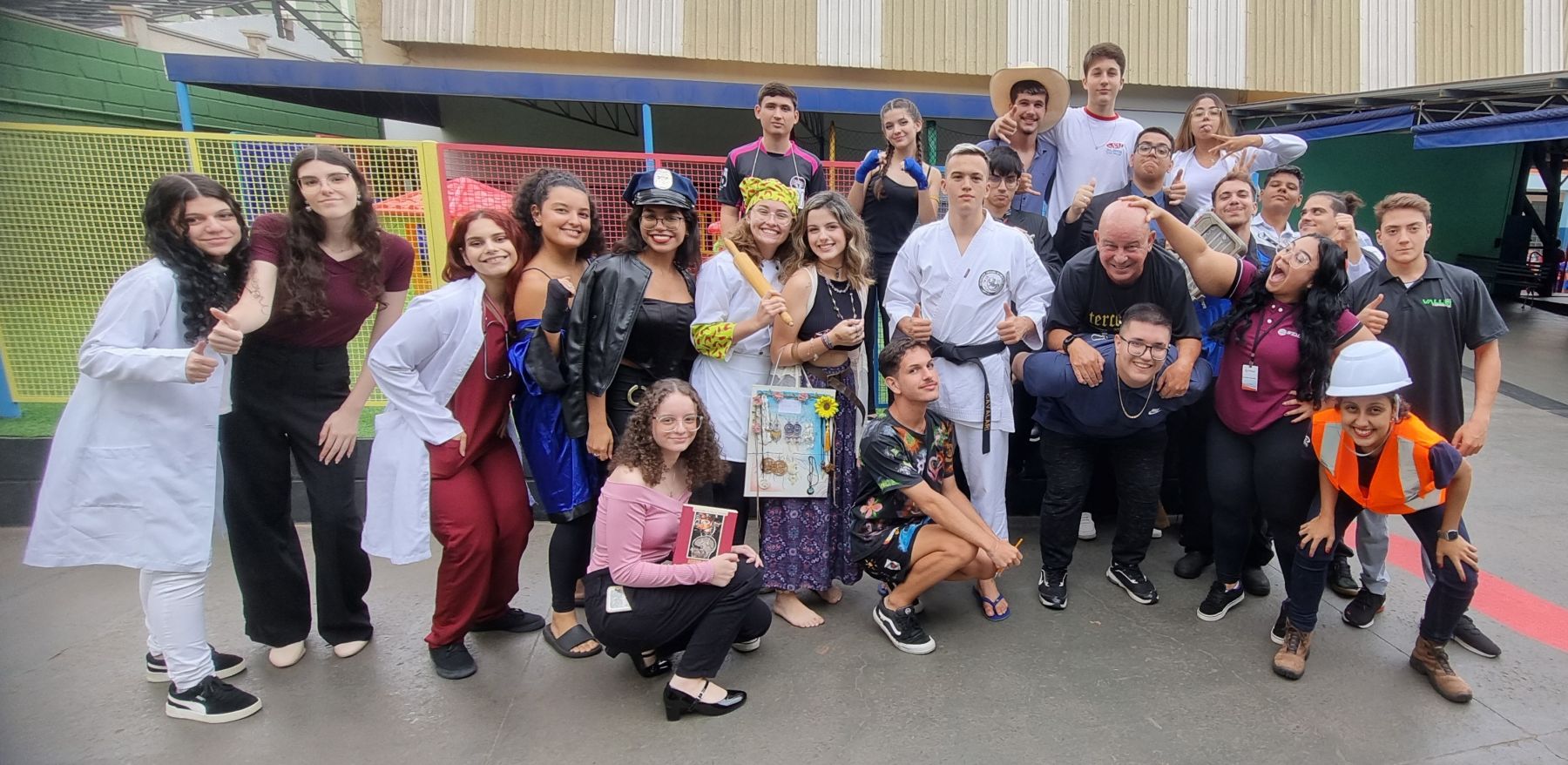 1- Fevereiro é o mês da folia! Apesar das comemorações carnavalescas já terem passado, os alunos do terceirão mandaram ver na criatividade e organizaram o trote de fantasia.
