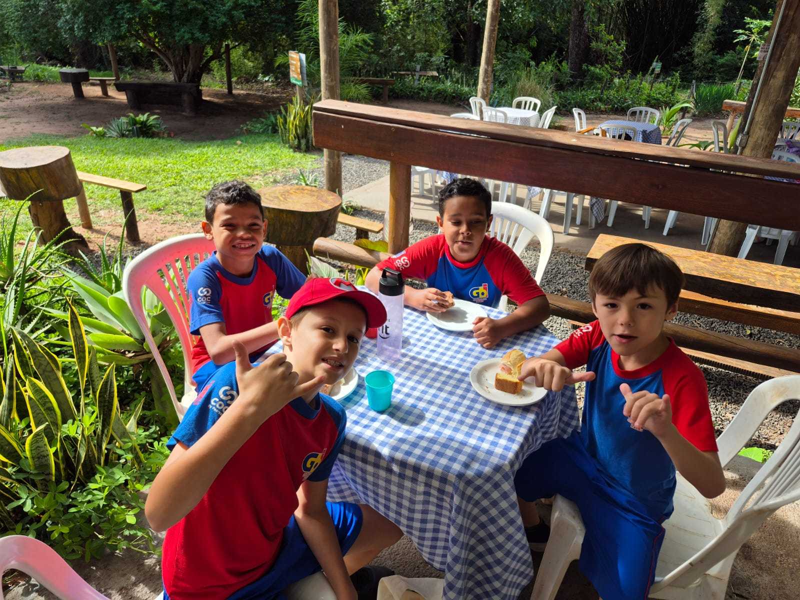A feirinha de materiais contou com a parceria essencial das famílias e, como recompensa, celebramos com um delicioso dia do sorvete. Finalizamos com um passeio especial, onde as crianças puderam vivenciar experiências na natureza e compreender, na prática, a importância de economizar para viver momentos tão especiais com os amigos.
