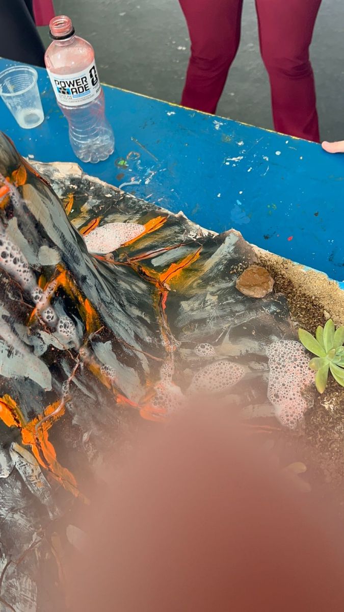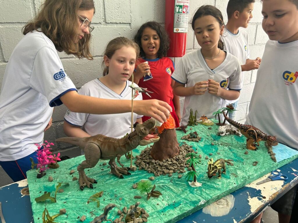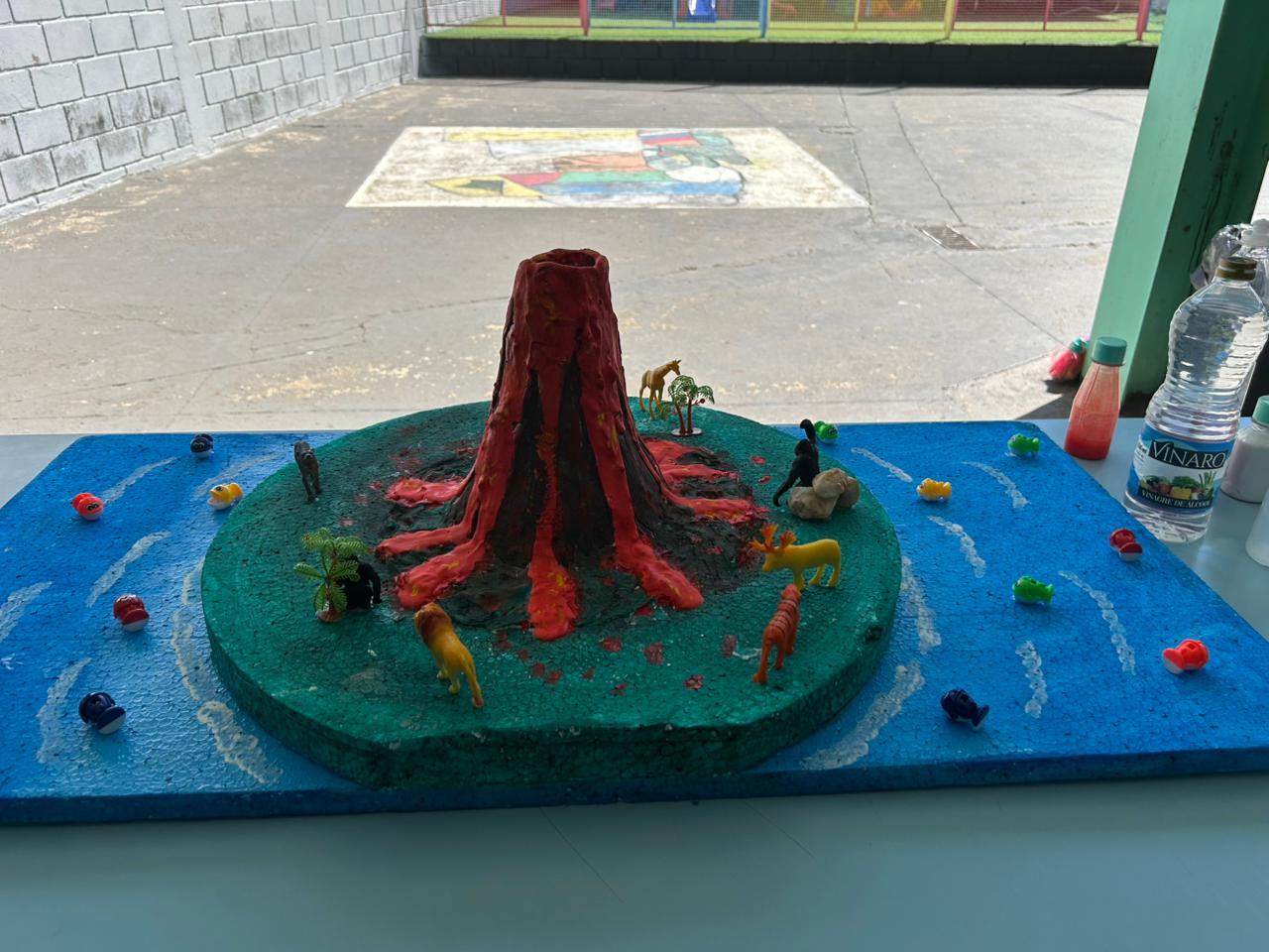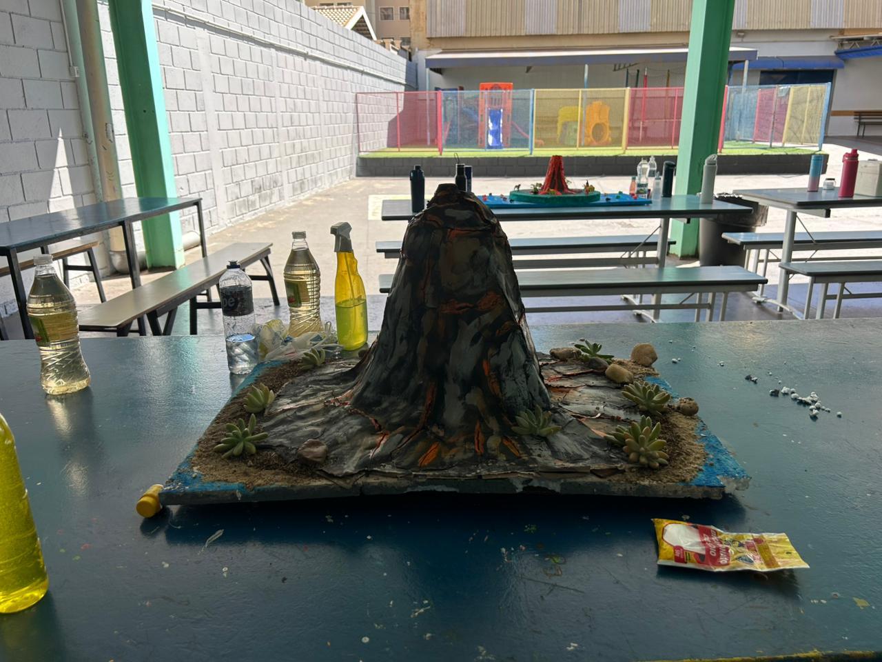 Os alunos construíram seus próprios modelos de vulcão e, por meio de uma reação química simples, simularam uma erupção, compreendendo melhor conceitos como transformação de substâncias e liberação de gases 🌋